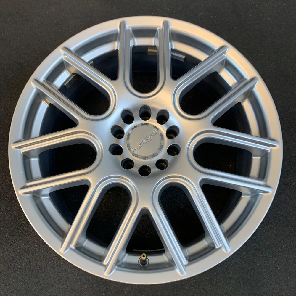 Vision Wheel 426 Cross Series 18" x 8" Wheel Rim. Matte/Satin Silver (Hyper Silver). Includes Center Cap. Wheel fits various makes and model years - however fitment is buyer's responsibility. Questions about fitment can be emailed but consider the following wheel specifications and your application before asking: Wheel size: 18" x 8" Hub bore: 73.1mm Bolt patterns: 5x110mm and 5x114.3mm (5 x 4.5 in) multi-fit Offset: 20mm Backspace: 5.25 inches Max wheel load 2100 lbs. Great utility replacement or spare wheel. Three wheels listed here. In order pictured, choose A, B or C. Make note at purchase, follow-up email or we can choose. SOLD wheel A - 8/12/2024 SOLD wheel B - 11/13/2024