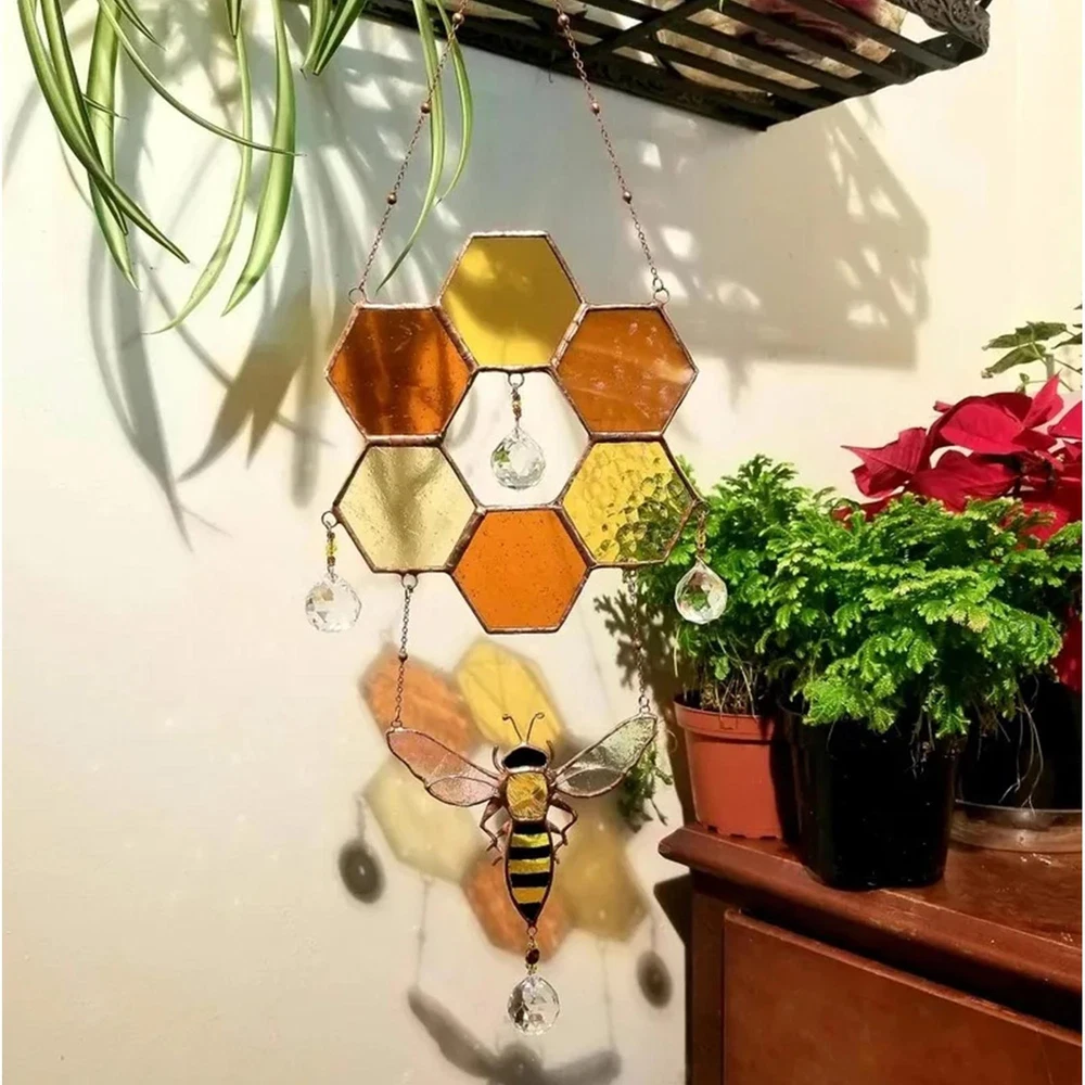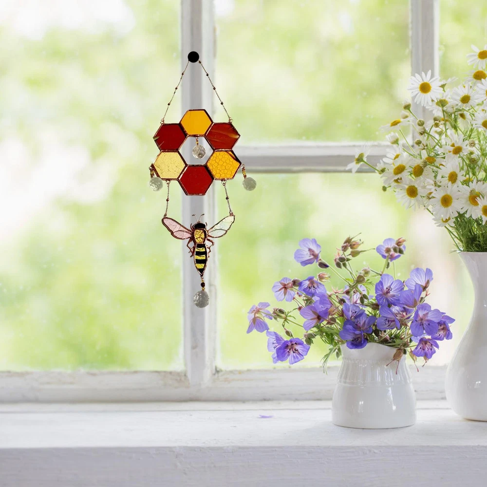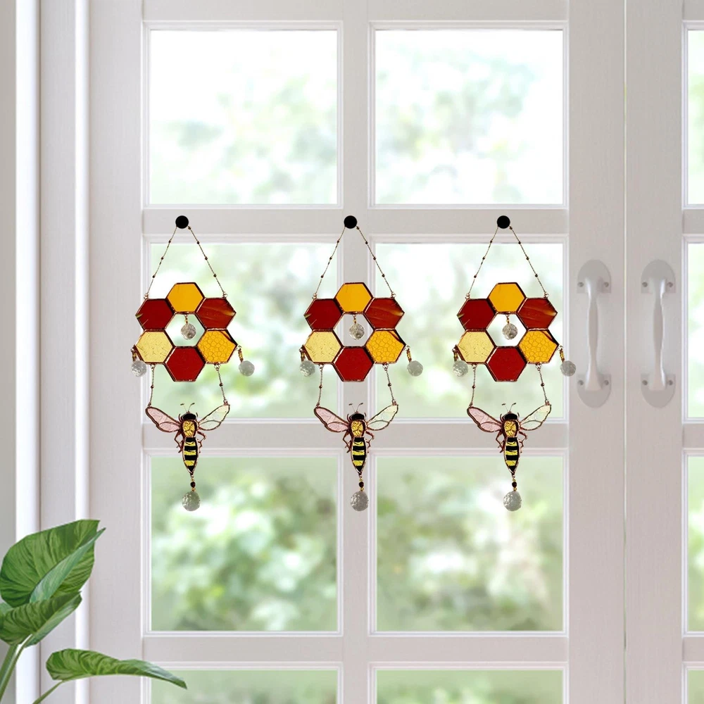Stained Glass Bee Honeycomb Hanging Suncatcher Ornaments Window Garden Decor Stained Glass Bee Honeycomb Hanging Suncatcher Ornaments Window Garden Decor 【Reliable Material】Honeycomb stained glass is made of high-quality acrylic and alloy materials, waterproof, scratch-resistant, sturdy and durable, not easy to bend or break\n【Creative Design】The light catcher decorations are designed in creative honeycomb shape, unique and beautiful, provide exquisite decoration and add artistic atmosphere to your space\n【Exquisite Workmanship】Garden ornaments are exquisite in workmanship, bright in color and not easy to fade, smooth surface without burrs, does not hurt hands, and feels comfortable\n【Easy to Hang】The bee pendant is equipped with a hangable alloy chain, you can easily hang it on a hook, doorknob or other places, easy to hang without any tools\n【Wide Application】Equipped with a strong suction cup, you can not only hang it on the window, but also suitable for hangings outdoors, bedroom, study room, corridor, behind the door\nDescribe: 1. The honeycomb colored glass is made of high-quality acrylic and alloy materials, waterproof, scratch-resistant, durable 2. When the sun shines, it becomes more gorgeous and looks richer 3. The light catcher decoration is designed in a creative honeycomb shape, which is very unique and beautiful 4. Provide a beautiful decoration and add an artistic touch to your space\nName: bee decorative door and window pendant Product size: 16*5*1.5cm Product weight: ~180g List: Honeycomb Sun Catcher *1 1、Our main method of payment is PayPal as it offers protection to the buyer and is regarded by many as one of the safest methods to pay online. 2、We will send items to you within 1-2 business days after the payment is cleared. 3、If you're not already a PayPal member, signing up is easy! 4、If you have any questions or ask a bulk buy offer, please contact us via ebay message. [Contace Us] 1.You can make a Credit payment via Paypal.Paypal will let you use MasterCard,Visa to pay. 2.Payment should be completed within 5 days after auction closed, or unpaid dispute will be filed for an closing auction.An unpaid case will be filled after 4 days. ● We strive for 100% customer satisfaction ! ● Positive Feedback is very important to us. ● We hope that you contact us immediately BEFORE you give us neutral or negative feedback, so that we can satisfactorily address your concerns. ● We promise to offer the lowest price and high quality produce. Dear buyers : ● Welcome to my store ! ● Your satisfaction is our top goal,we appreciate your patronizing. ● If you have any questions, please contact us before leave negative or neutral feedback, we will try our best to solve the issue to your satisfaction, thanks ! ● If you are satisfied with our service, please rate the details of the transaction (Detailed Seller Ratings) on eBay. ● Please always talk to us via ebay Message. ● We appreciate your business and look forward to growing our e-Bay sales with satisfied customers.