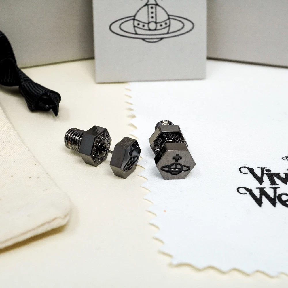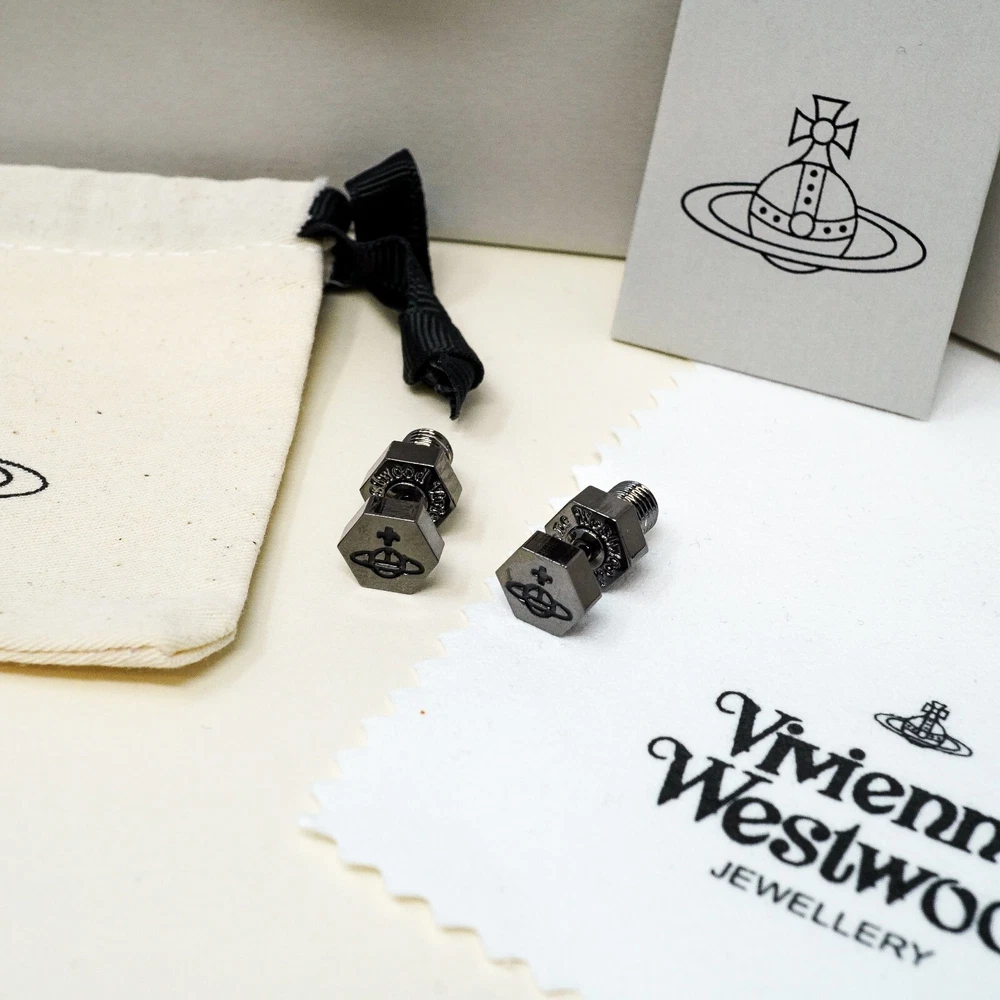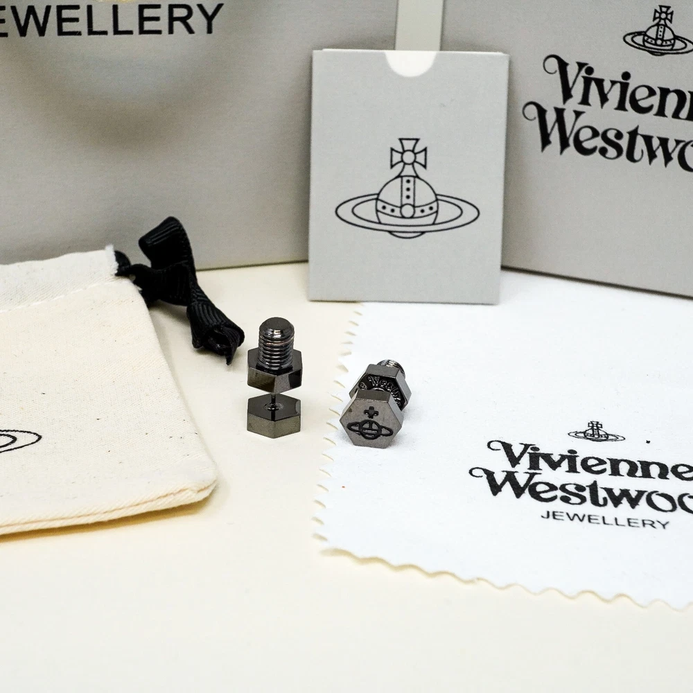 HomeVivienne Westwood Earrings, Gun Metal Bolt / Screw Orb Studs Gift Box Set