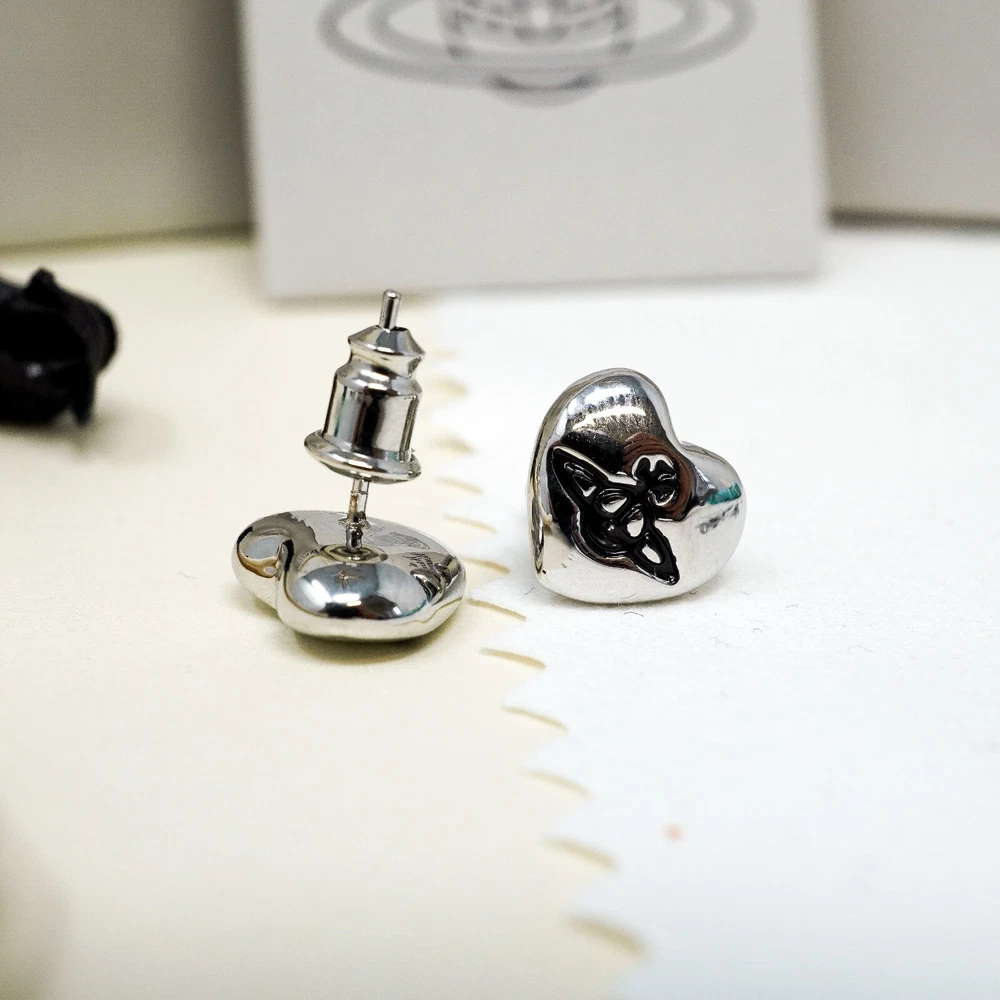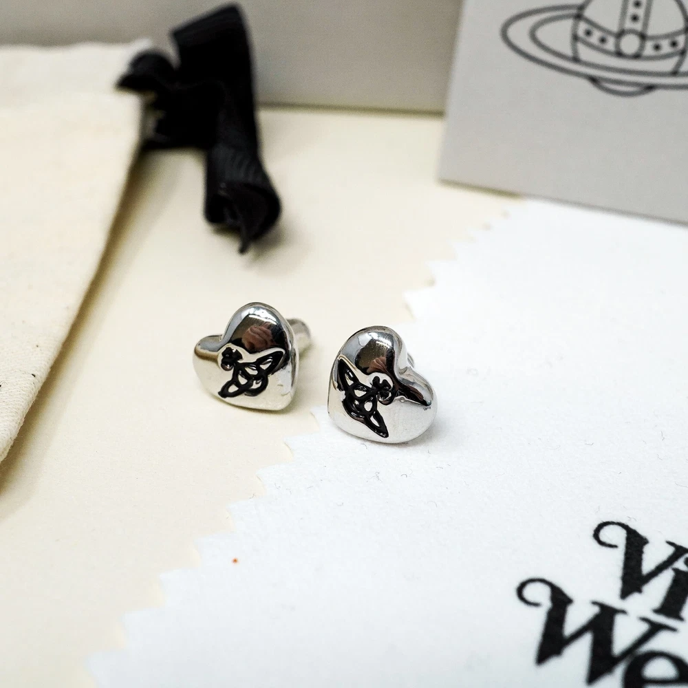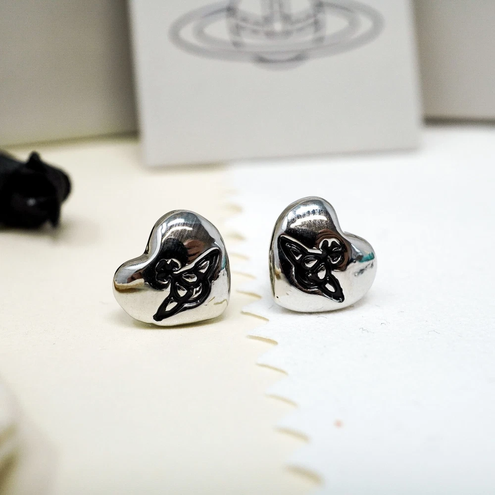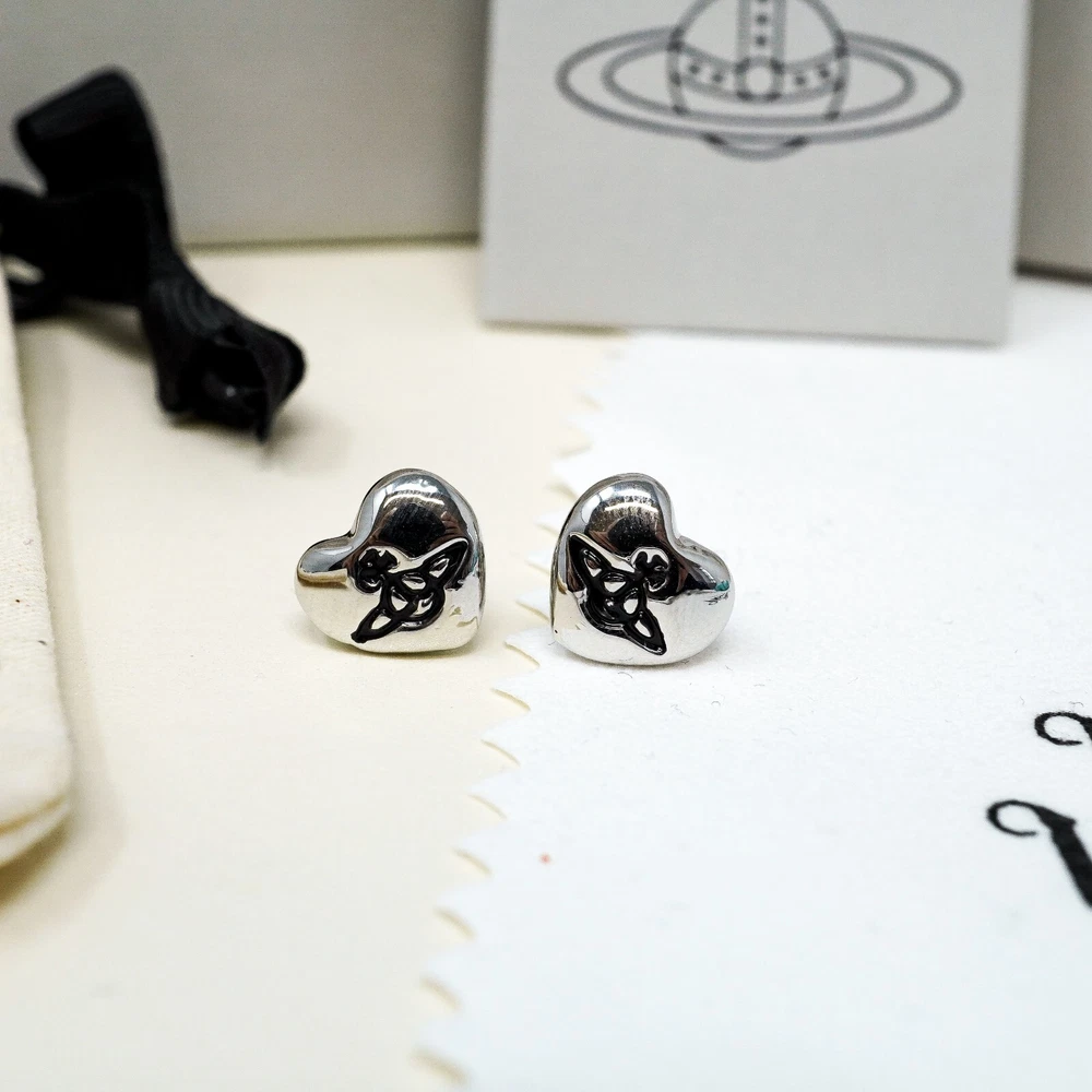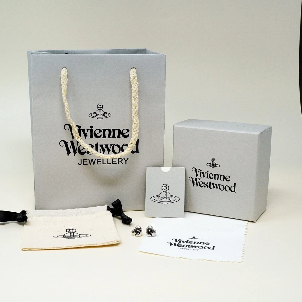 Vivienne Westwood Earrings, Small Silver & Black Heart Orb Studs Gift Box Set