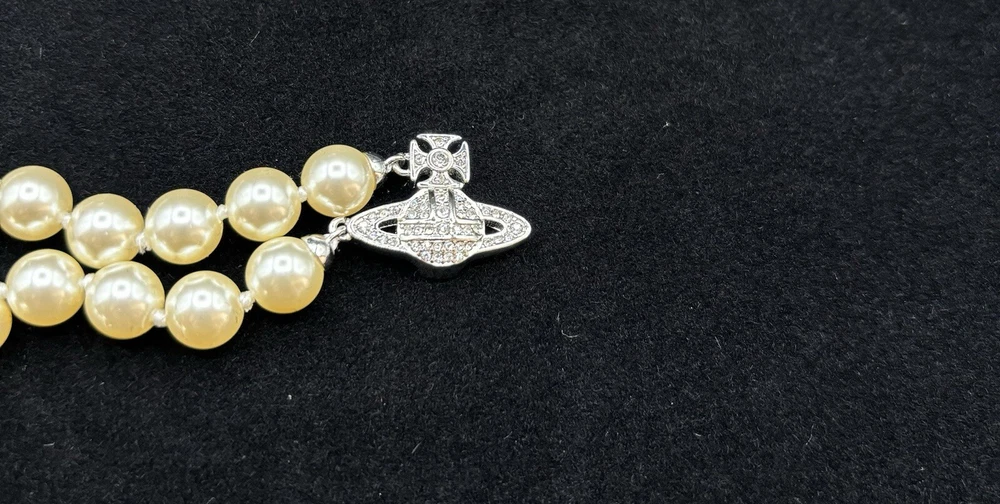 Vivienne Westwood Nana GRAZIELLA Two Row Pearl Pave Orb Bracelet SilverTone #372 AUTHENTIC PREOWNED EXCELLENT CONDITION No dust bag or box available SHIPS OUT WITHIN 24HRS!!