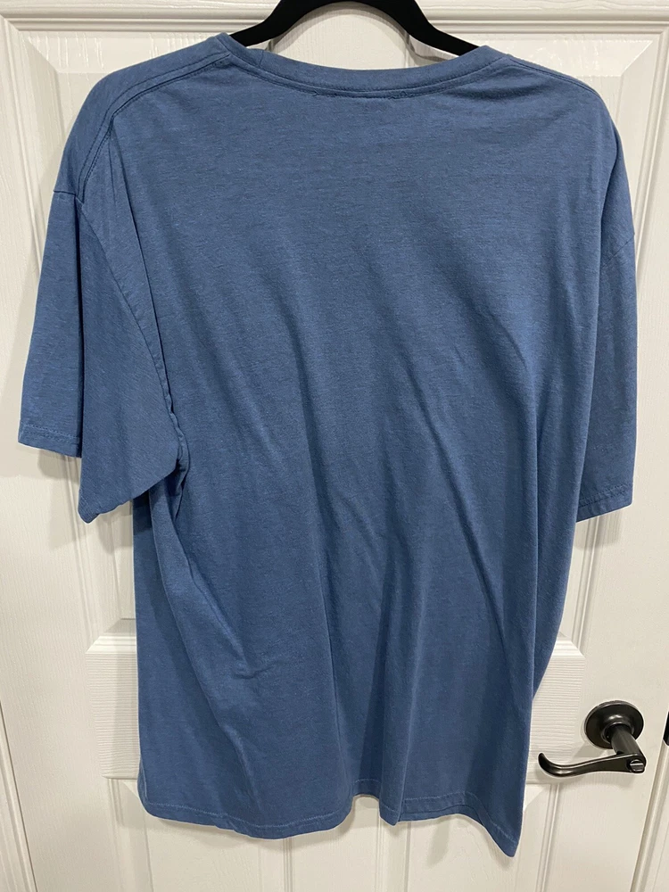 In good condition. Comes from a smoke free home. This Volcom graphic t-shirt in blue is perfect for any season. It features short sleeves and a crew neckline, with a regular fit for added comfort. The solid pattern and logo accents make it a stylish addition to any wardrobe. It is machine washable and easy to care for, while also being lightweight and breathable. Available in size XL, this t-shirt is suitable for men of all shapes and sizes. Whether you're dressing up or keeping it casual, this t-shirt is a versatile choice.