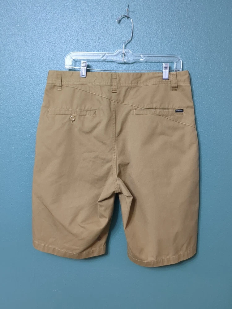 Elevate your wardrobe with these stylish Volcom Men's Chino Flat Front Shorts in Khaki. Perfect for any occasion, whether it be for travel, workwear, or casual wear, these shorts feature a solid pattern and zip closure. The cotton blend material and medium fabric wash provide comfort and versatility, while the stretch feature ensures a perfect fit. These shorts are perfect for skateboarding enthusiasts with its modern design and flat front feature. The beige color and regular fit make it a great addition to any outfit. Get ready for any season with these versatile shorts, whether it be winter, summer, fall, or spring.