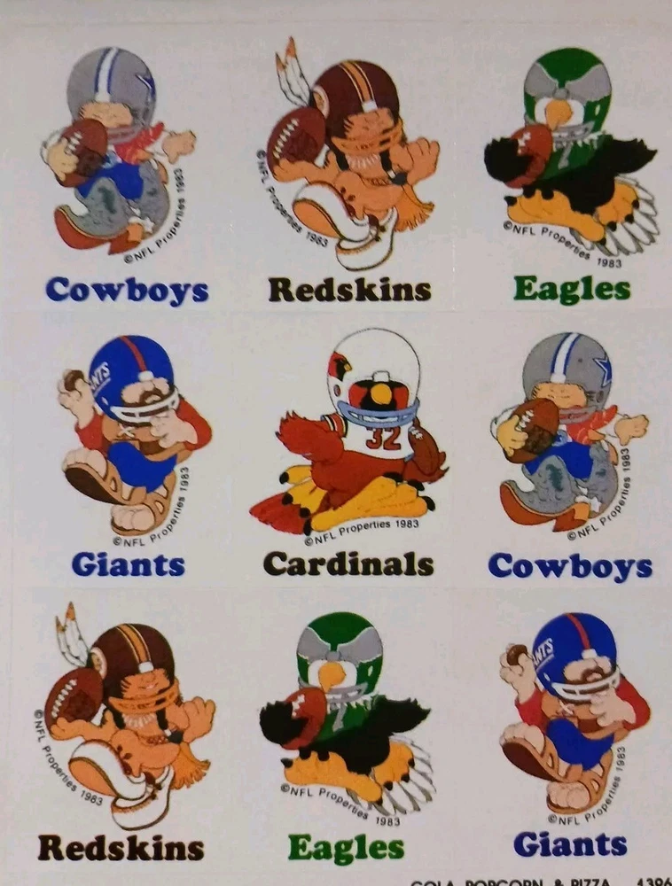 Add some vintage flair to your sports collection with these officially licensed 1983 Huddles NFL Team Mascots NFC Eastern Division Scented Stickers. These stickers are a must-have for any football fan and feature the beloved team mascots of the NFC East. Made in the United States, these original vintage stickers are a rare find and will make a great addition to your sports memorabilia collection. Don't miss out on this opportunity to own a piece of NFL history.