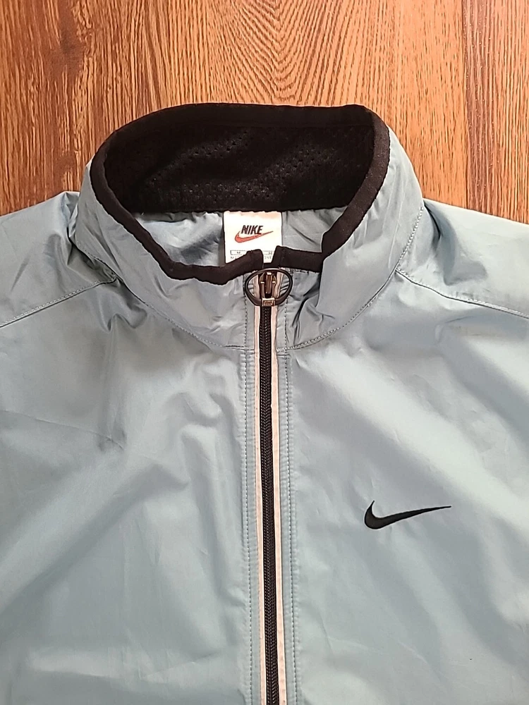 Vintage 90's Nike Running Vest Sz-Medium Light blue/Black Single Swoosh Mint condition No flaws Zippers in perfect condition Reflectors in perfect condition Ships immediately Thank you very much Ig-Top_Shelf_Curations