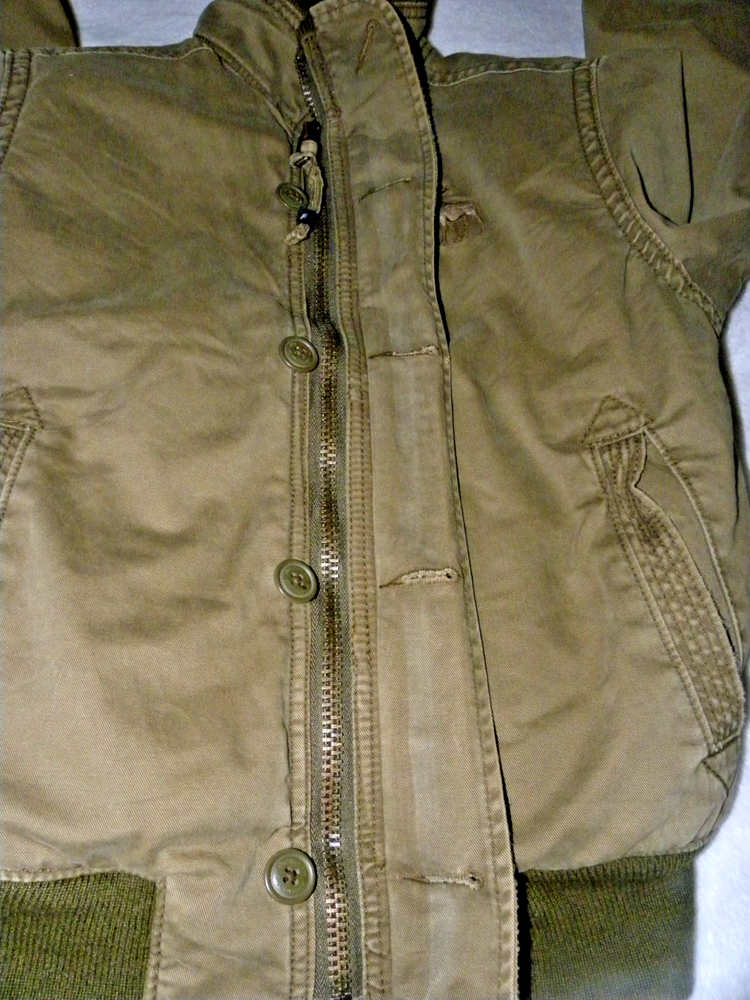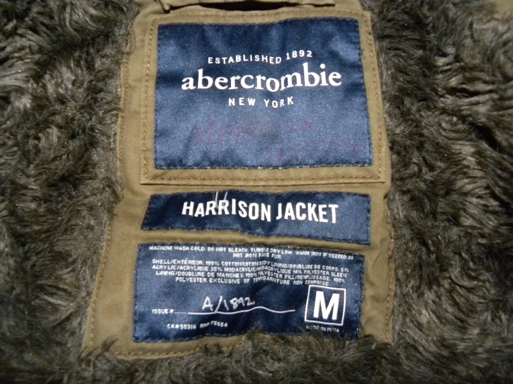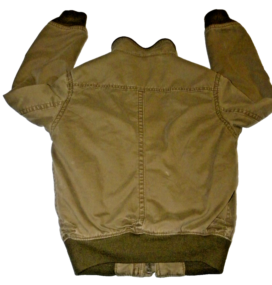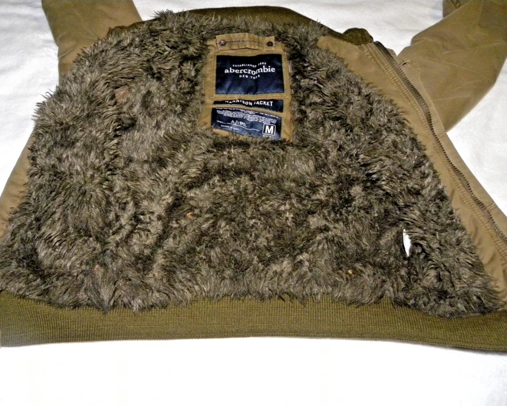 Classic Abercrombie & Fitch medium jacket with rugged cotton canvas shell and plush faux fur lining. Features ribbed cuffs and waistband for warmth, button + zip front closure, and signature moose logo embroidery on the chest. The scalloped back hem adds a distinctive Abercrombie touch. • Size: Medium (fits like a women’s jacket — see measurements) Shoulder seam to shoulder seam 16" - Armpit to armpit 19" - Rear collar to base 25" • Color: Brown with darker ribbed trim • Material: 100% Cotton shell, faux fur lining (poly/acrylic/polyester blend) • Made in India – RN 76564 • Details: Button + zip front, faux fur lining, moose logo, scalloped back hem • Condition: Excellent vintage condition with no stains, tears, or fading. Faux fur is plush and intact. This jacket dates to the late 2000s–early 2010s, when Abercrombie outerwear was prized for its rugged styling and premium feel. A versatile cold-weather piece with nostalgic A&F heritage. Ships fast, folded with care.