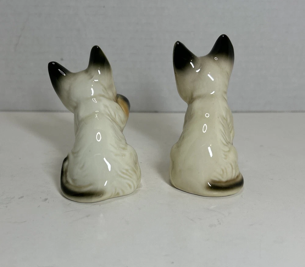 Set of 2 Enesco Siamese blue eyes kittens cats bone chine porcelain. Glossy finish cold painted eyes and blue whiskers Each is about 3 inches tall and about 2 inches in length and about 2 inches wide No chips and no cracks