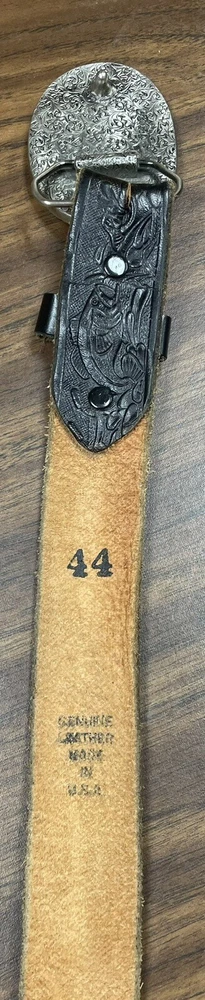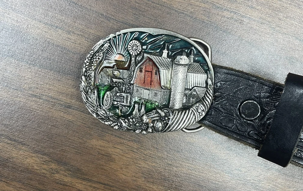 HomeVtg Great American Belt Buckle Co Farming w/ Leather Bass Fishing Belt Size 44