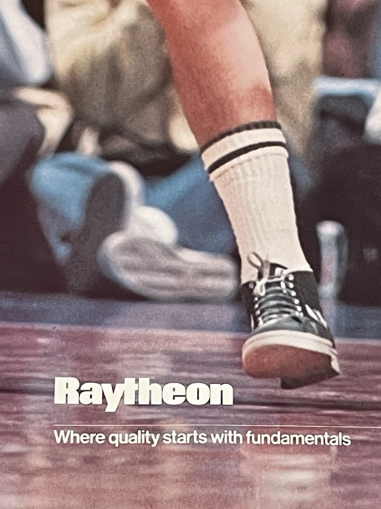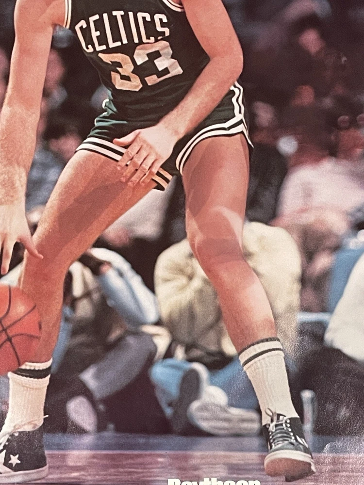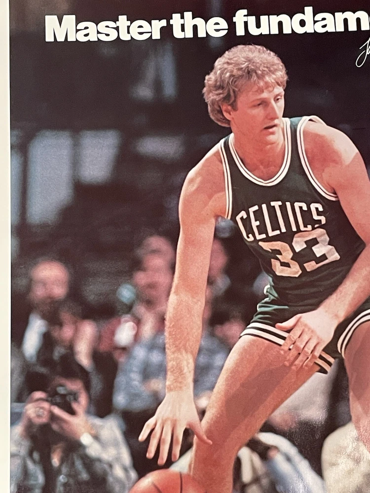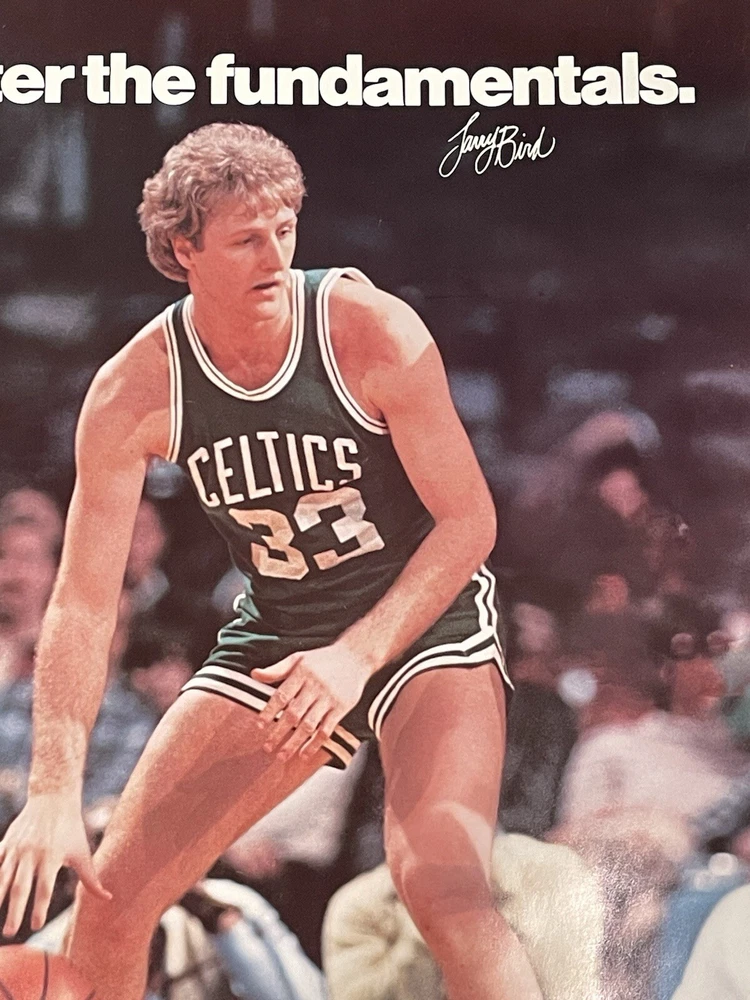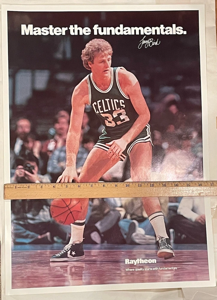 Vintage Raytheon advertising poster featuring Larry Bird number 33 of the Boston Celtics Vtg LARRY BIRD 33 BOSTON CELTICS POSTER “Raytheon Master the Fundamentals” Poster measures 16 1/2 x 23 1/ inches