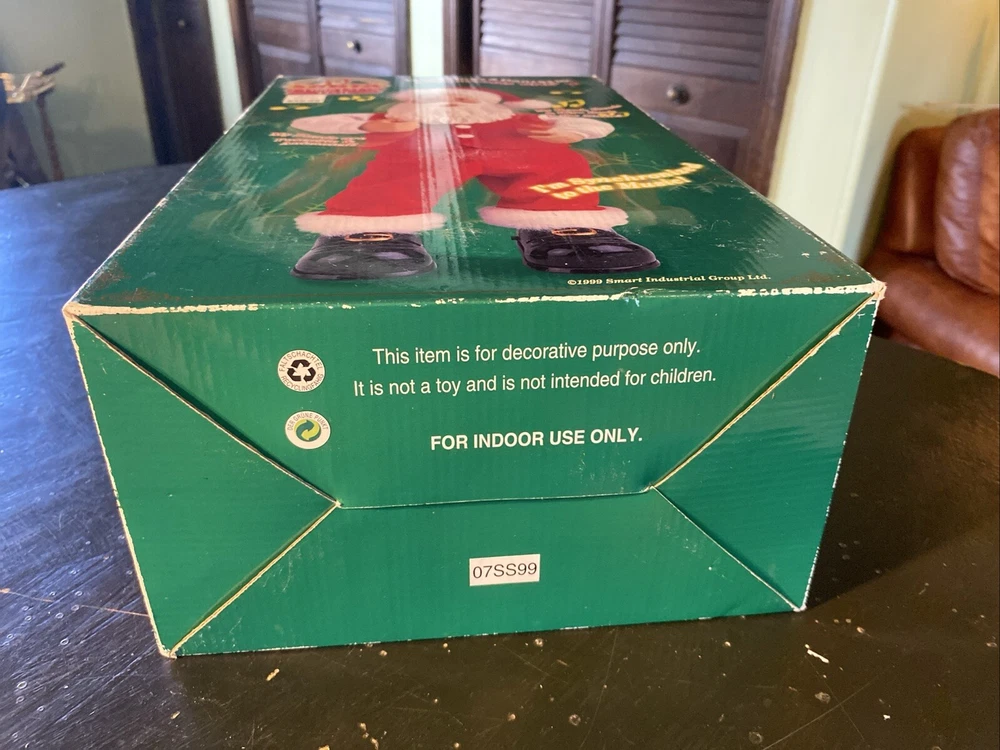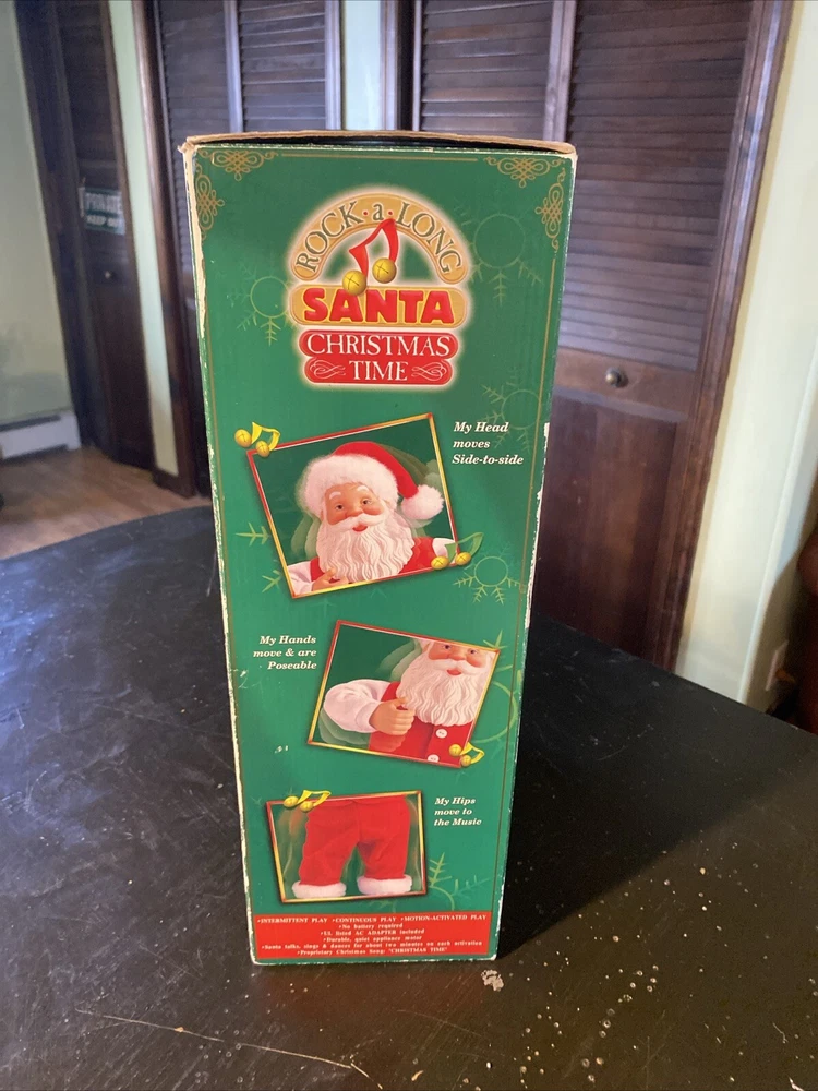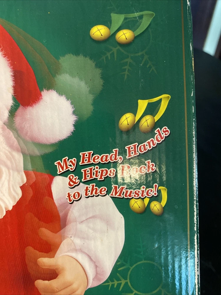 New old stock. Never taken out of box or used. Original box does show wear, however. Please see pics carefully. 1999 animated Santa. Sings and dances to “Christmas time”. Hand head and hips rock to the music. Hands or opposable and animated. Great new condition. Ships the next business day after payment.😊