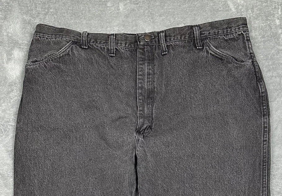 Vtg Rustler Jeans Mens 46x32 (Fit 42x27.5 Hemmed} Faded Black Straight USA READ One small hole in each bottom portion of pant leg and faded but otherwise in good pre-owned condition and laundered. Please see measurements in photos. I ship next business day, but sometimes same business day and Saturday if order is paid for early enough. Please let me know if you have any questions. I am open to offers!! Feel free to look at other items in my store! Thanks!