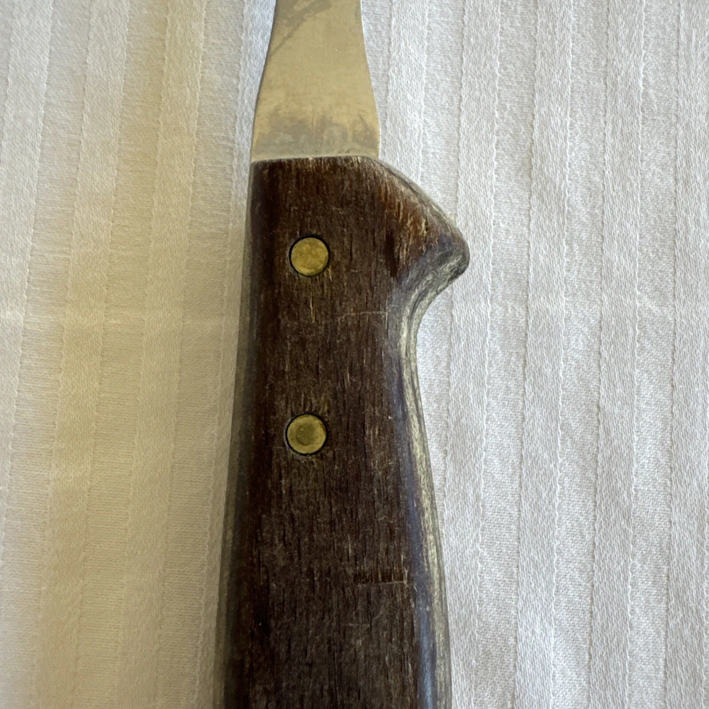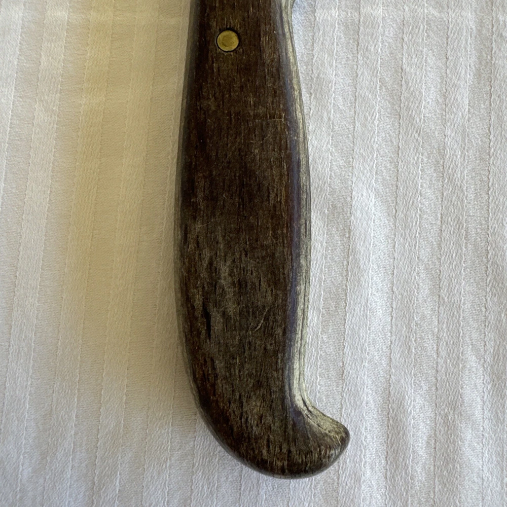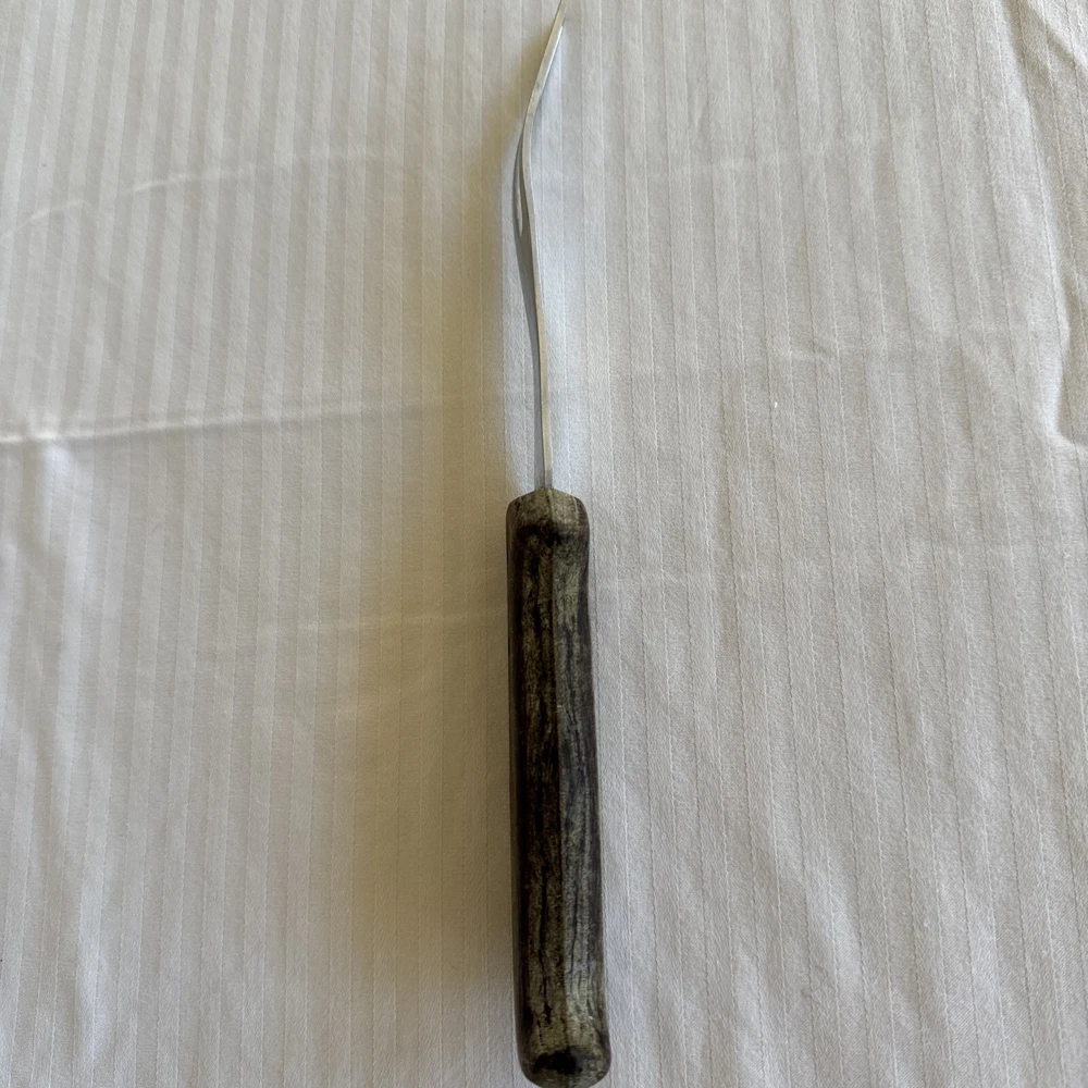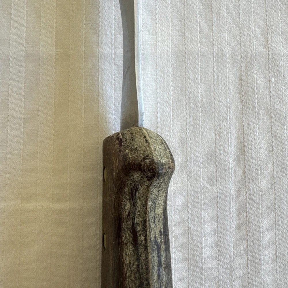 This vintage USA meat carving fork is a high-quality addition to any kitchen. The fork has a stainless steel construction with a matte finish and a wooden grain handle pattern. Measuring at 9.25 inches in length, it is perfect for carving meats and other foods. The Selig Meat Fork model is an original piece from the 1980s with no custom bundles. It is dishwasher safe and comes with a two-prong fork design. The fork is perfect for all occasions and does not have any California Prop 65 warnings. Add this unique and durable meat fork to your collection today!