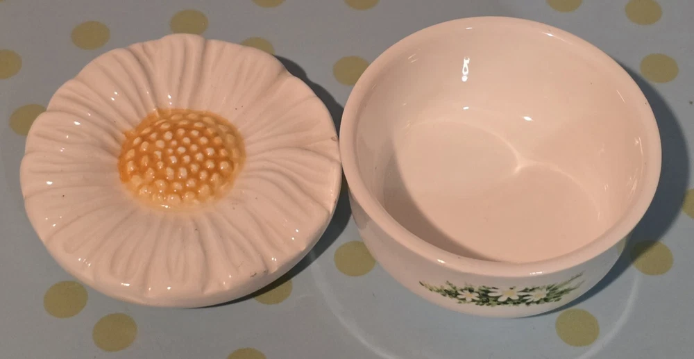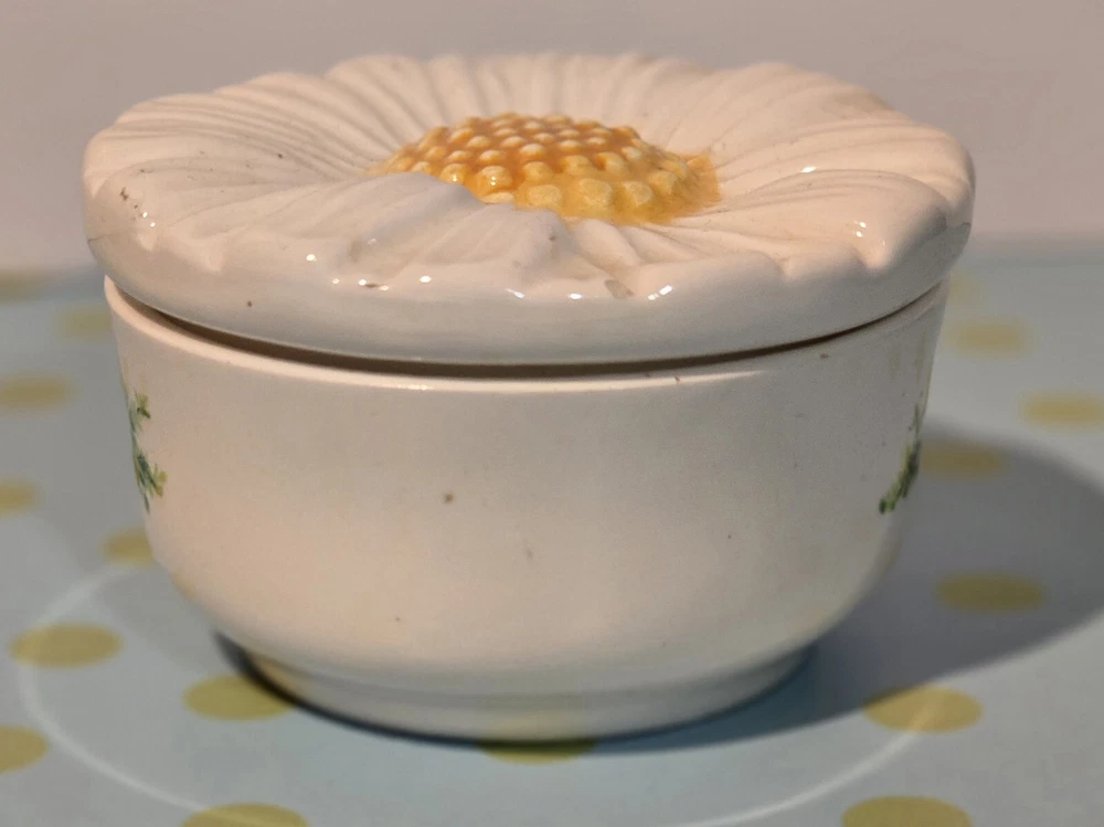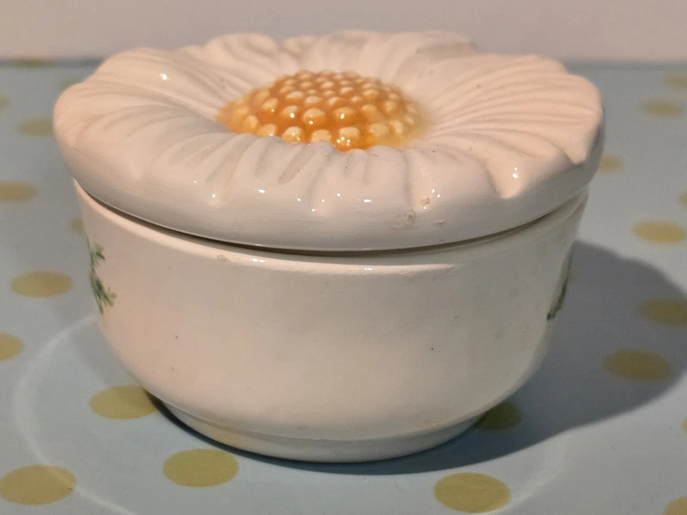 Care Instructions:Clean with Damp ClothShape:RoundBrand:WheatonOriginal/Reproduction:OriginalPattern:FloralMaterial:CeramicItem Weight:4.3 ouncesSubject:FlowerStyle:1970sType:Trinket BoxFeatures:BoxedRoom:Any RoomOccasion:All OccasionsSize:SmallFinish:GlossyColor:Multicolor
