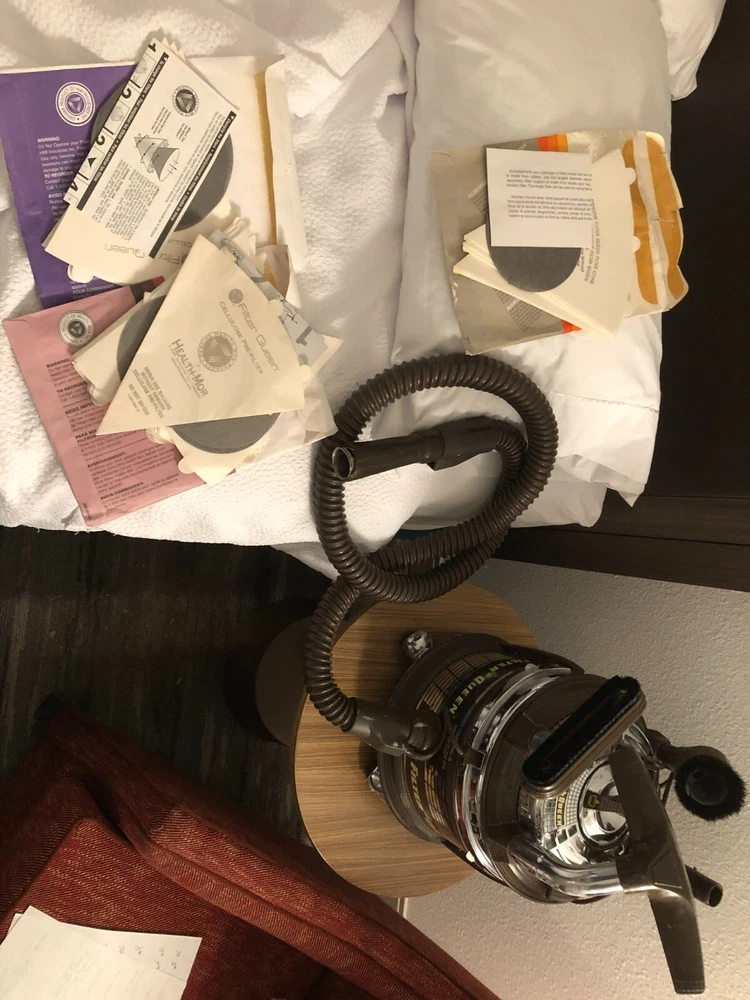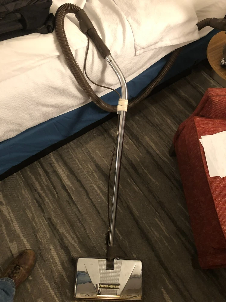 This is a listing for a vintage tested Filter Queen Model K31X vacuum w/ (4) attachments + K-88 floor sweeper + filters + swivel caster set. It is in good condition, but the wand has been taped to hold the cord. Buyer to pay $50.00 for shipping via UPS. Please see my other listings. Thanks for looking!