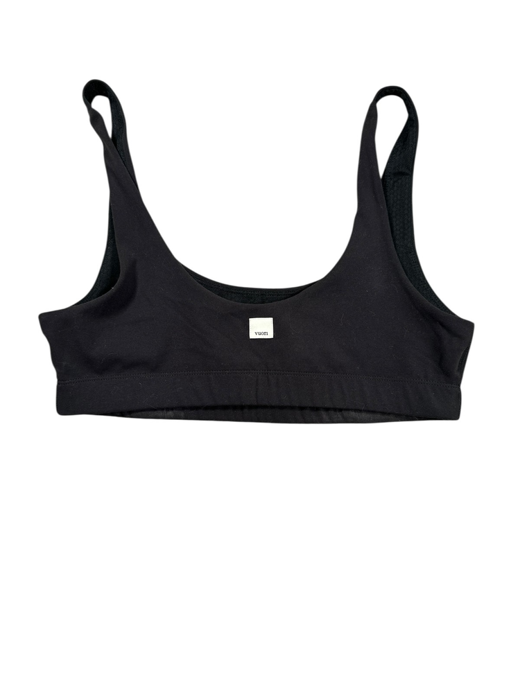 Vuori Daily Sports Bra Womens Size Medium Black VW158 Yoga Running - No Pads Condition: some discoloration along the inside band / no pads included Returns: I offer a 30 day free return on most items. Material: 72% polyester, 28% elastane Ships quickly and comes from a smoke-free home! Please refer to photos for size measurements / reach out with any questions or if you are wanting additional photos!