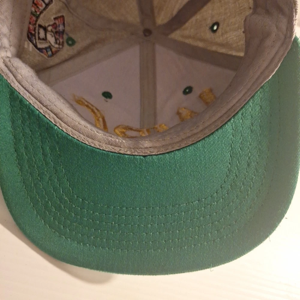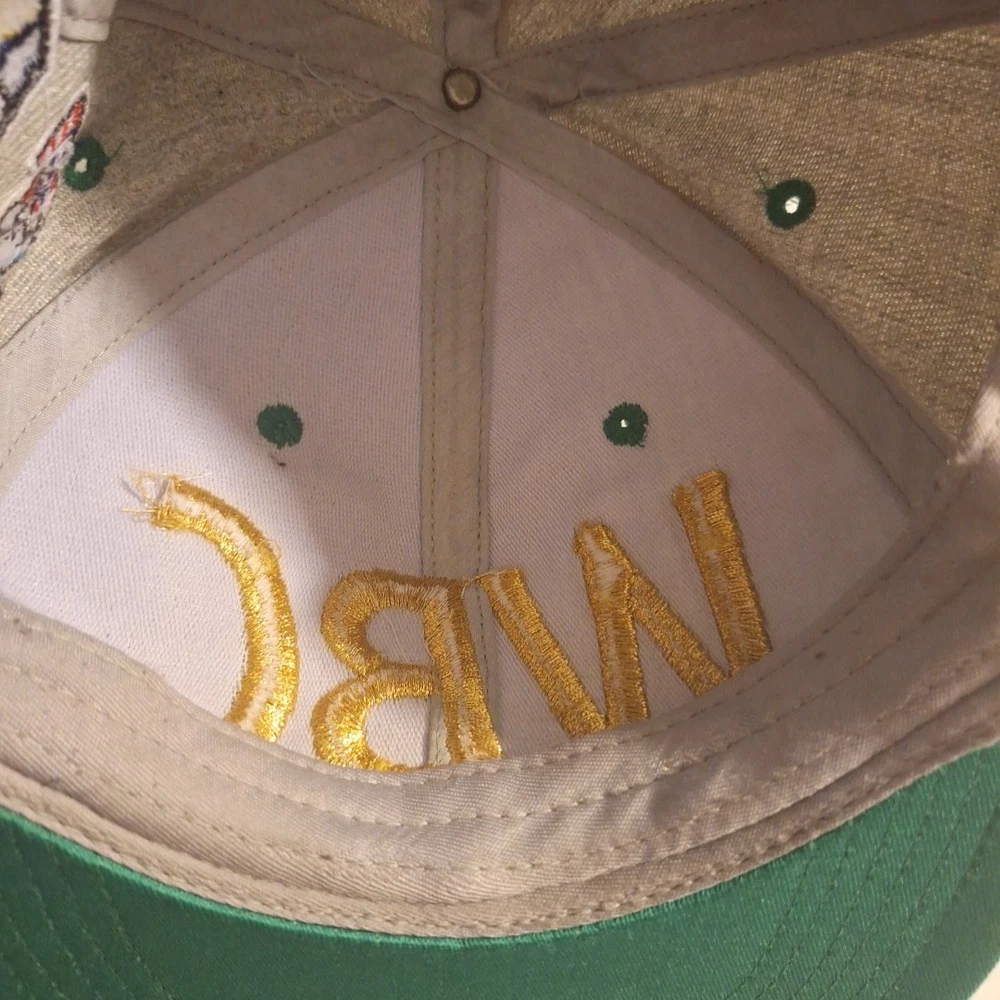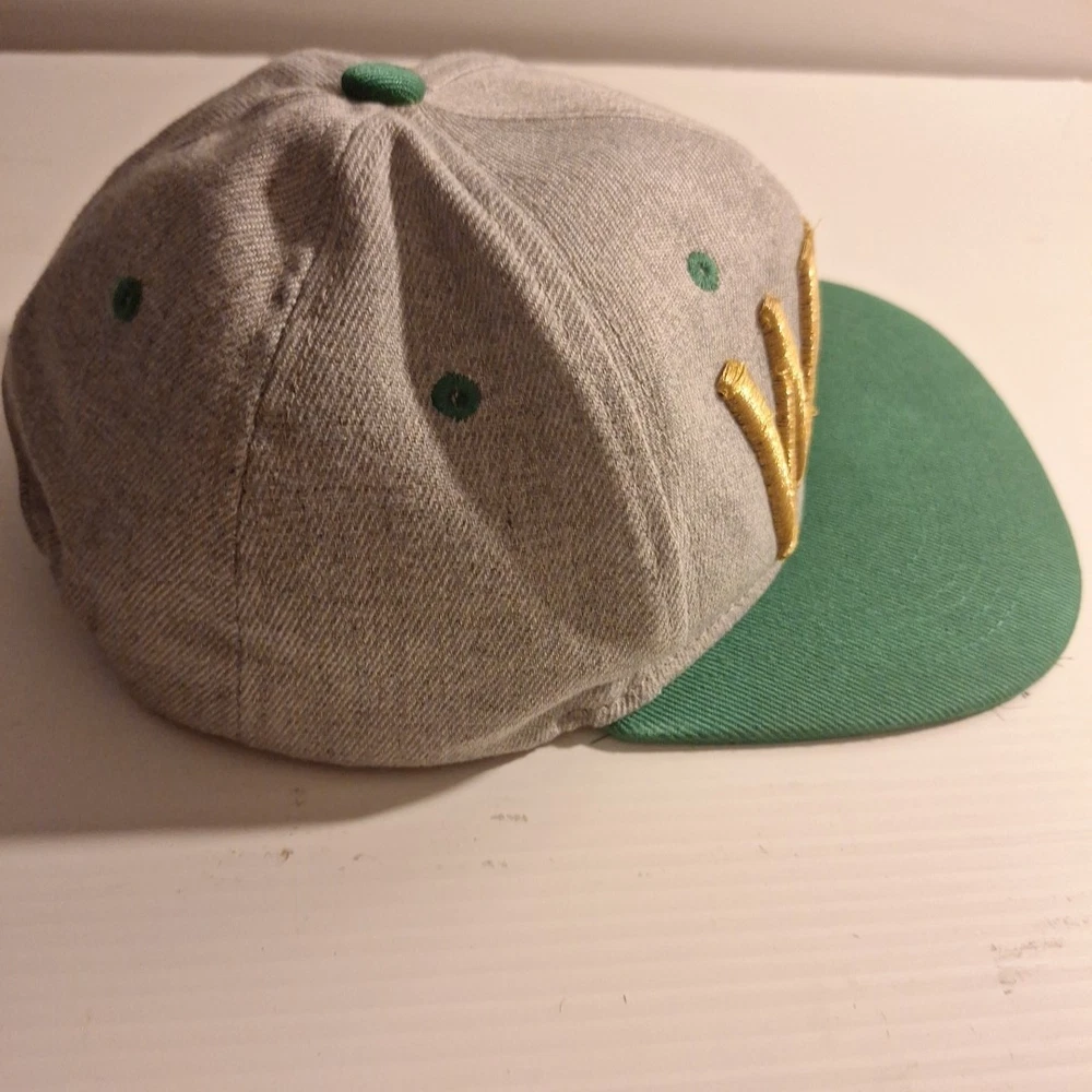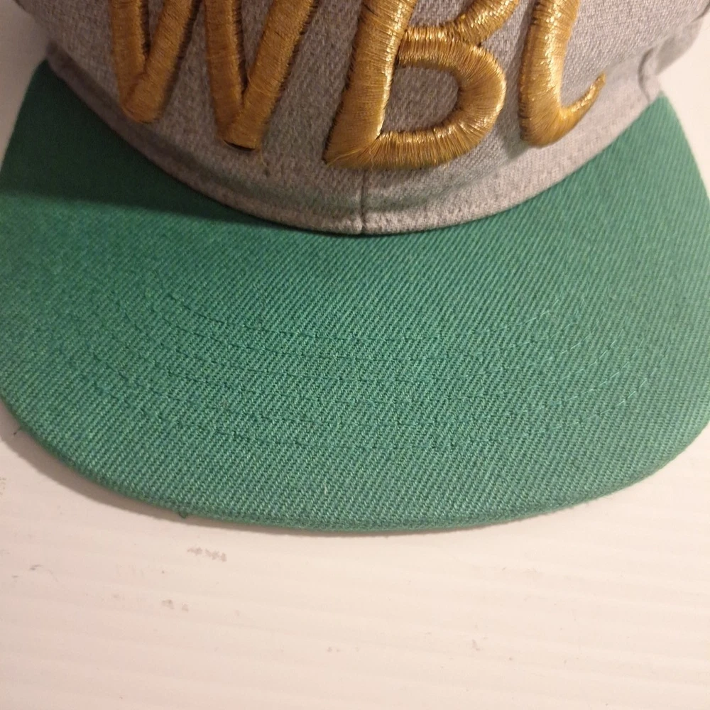 The WBC Embroidered Snapback Hat is an officially licensed product representing the World Boxing Championship. Featuring the iconic WBC logo, this hat is designed for fans of boxing and showcases the colors of green, grey, and gold. The snapback design and one-size-fits-all construction make it suitable for both men and women, making it a versatile and stylish accessory for any boxing enthusiast's collection. Pat is used and has a little bit of wear. Could use a steam cleaning to smooth out any wrinkles in the crown. Tag is missing. Embroidery is in "good condition". Please see pictures for further detail.