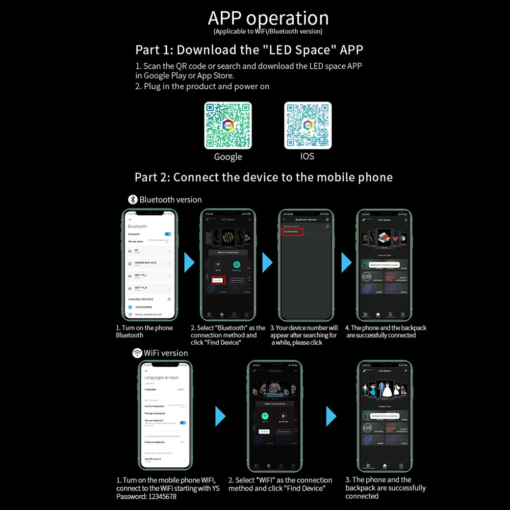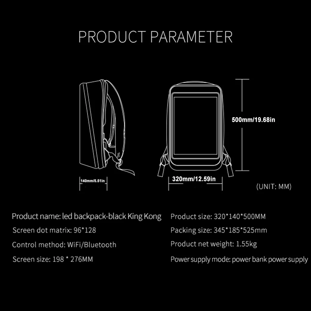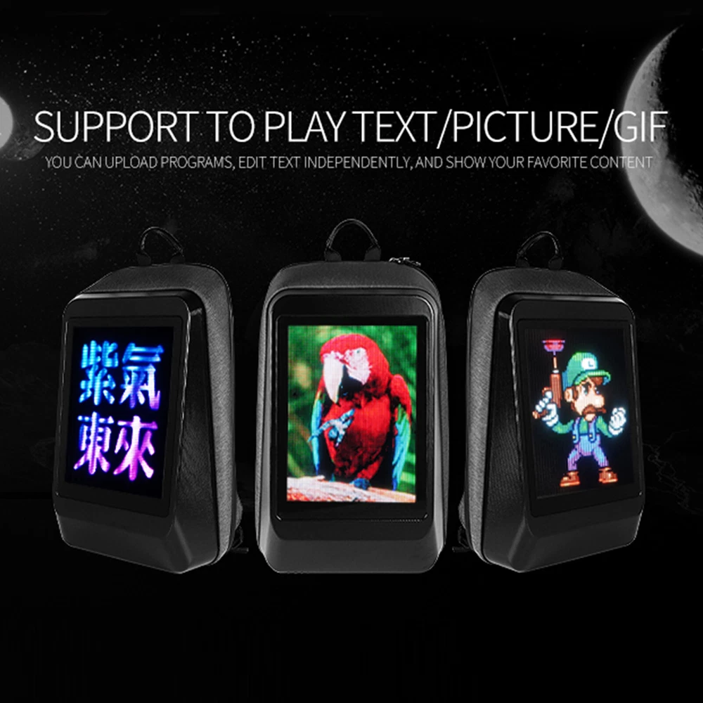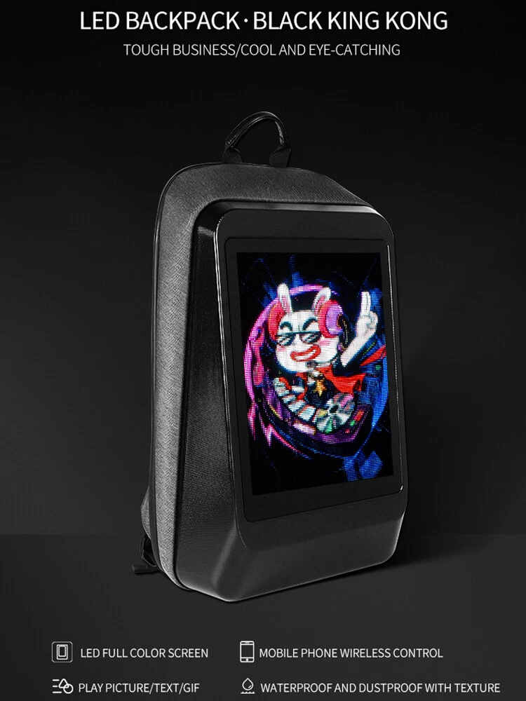 WIFI Smart LED Backpack Dynamic Display Colorful Advertising Showing Move Bag Description feature: 1. Cool black technology, built-in LED display. 2. Support a variety of playback formats: pictures, animations, text. 3. With the use of mobile phone applications, you can edit your own style. 4. The size of the backpack is moderate, which can meet the daily use. 5. There is a waterproof film on the outside of the screen, which can work normally even in rainy days. Specification : Support points: 128*96 full color dot matrix screen Dot Spacing: P2 Screen size: 20*27.5cm Rated pressure: 5V/2A Power supply mode: mobile power supply Power supply communication method: GPRS Bluetooth Support picture animation size: 128*96 pixels, 72 resolution Supported file formats: text, pictures, GIF animation Backpack size: 32*14*50c m Net weight: 1.6KG Package Included : LED backpack*1 Terms & Conditions Payment We accept payment via Credit Card、Debit Card、Apple Pay、Google Pay or PayPal etc. Payment must be made within 4 days of auction closing. or an updaid case will be open on ebay automatically. Please contact us via ebay massage to list your special requests (color, packages, etc.) immediately you paid for the order. Shipping We arrange the shipment from Monday to Friday. Shipping fee includes packaging and handling fees. Items will be send out within 1 business day after Payment Verified (Available on business days only). Please check your ebay shipping address before payment, and make sure it contain a valid phone number because almost all shipping request phone number, we may hold the order if phone number is missing . If the item is from China, we will ship by safer way,sometimes may need to pay tax by buyer,we don't take responsibility if buyer don't clear the customs. Return Please contact us for a solution via ebay massage before open a return. Communication always is best way to solve problem. We accept any return in 14 or 30 days that we promise. If buyer return it just because buyer don't like it or bought a wrong item, it is buyer pay for return shipping fee. If item is defect or wrong when arrives, we will pay for the shipping fee after buyer show the shipping invoice. Please never return the parcel without agreement , if you don't get RMA NO. from us, it is no possible for us to get the parcel. and we will take no further auction for the return. Feedback We will automatically leave positive feedback to every buyer who completed the transaction. Please DO LEAVE us FOUR 5- Detailed Selling Rating (DSR) and give Positive feedback which may help a lot for our business development. Because the Ratings below 5 are equal to "You are NOT satisfied. Your recognition is our motivation in developing our small company and improving our service for each customer. It'll take you one minute only. If you're not satisfied with our goods or service, please write to us immediately so that we can help you out. Sincerely hope you do not leave us any negative or neutral feedback. Communication is very important, we believe we can resolve all the problem with each other. Terms & Conditions We are legal company and honest seller, will protect every customer's profit. Any thought, please feel free to contact us. We will give you the best advise. We welcome to answer any questions you have. Please send us a message through eBay and we will answer you within 24 hours. Our working time: 8:30 AM - 18:30 PM (Beijing Time GMT+8 ), Monday - Friday. (weekend and holidays excluded).