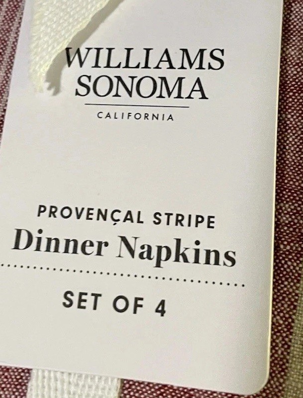 WILLIAMS SONOMA PROVENCE STRIPE NAPKINS, SET OF 4 MSRP $50 - NEW. Condition is New with tags. Shipped with USPS Ground Advantage.