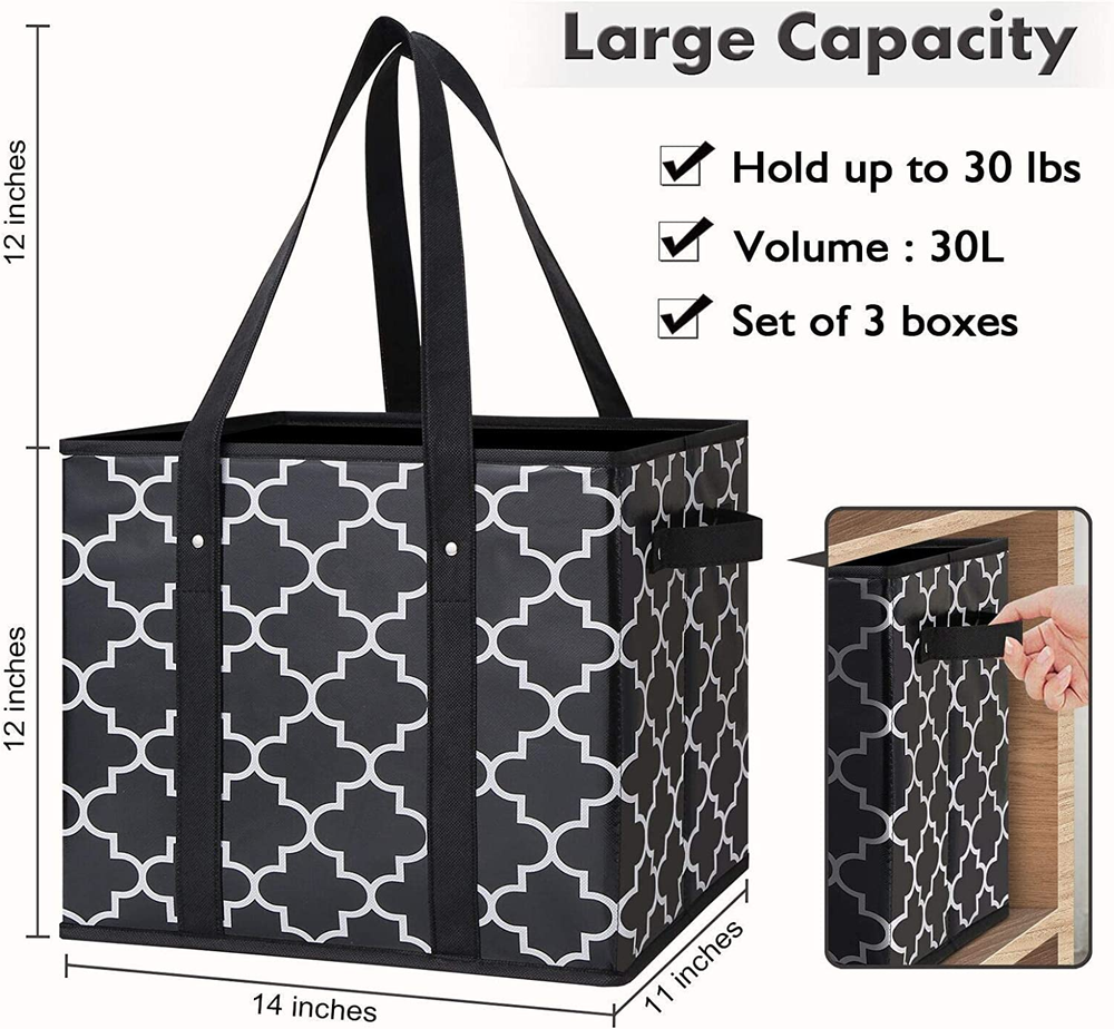 Store New Arrivals Add to Favorite View Feedback Contact WISELIFE Reusable Grocery Bags 3-Pack Foldable Washable Large Storage Bins Basket Water Resistant Shopping Tote Bag Black Description Item model number SB3 Color Black Product Dimensions 14 x 11 x 12 inches Country of Origin China Item Weight 4.07 pounds Department Unisex Adult Manufacturer WiseLife Size 3 Pack MULTI-USE: the tote bags can be used as a storage basket; perfect way to organize clutter; the storage tote also works as a reusable grocery bag to carry groceries and fits well in a shopping cart to organize while shopping COLLAPSIBLE AND EASY TO CLEAN: this shopping box can be folded up flat for easy storage when not in use; the reusable bags can hold up to 33 lbs; this bags are easy to clean, simply use a wet cloth to wipe off dirt or debris and let air dry RIGID STRUCTURE: the bag is made of heavy-duty fabric reinforced and stiffened with a cardboard insert on each side, ensuring a erect structure when opened; the shoulder straps are sewn down the side of the bag and reinforced with metal rivets EASY TO CARRY: the storage bins have short side handles in addition to longer wide shoulder straps to ensure comfortable use; the thick side handle and rigid construction make it easy to pick up the tote from the car or grocery cart for quick access REUSABLE: one reusable bag is equivalent to 1000+ times of using plastic disposal bags; the kitchen reusable grocery bags are a wonderful alternative to single-use plastic bags; keep our bags in your car and at home for emergencies or outdoor activities Product Description ABOUT US We offer the best prices around on high quality products. Our E-store includes media such as books, movies, music and games while offering electronics, toys, sporting apparel, clothing, tools, general home, garden items and more. SHIPPING We are always working hard to ensure your package arrives as soon as possible. Please understand that some factors like weather, high postal traffic, and the performance of shipping companies are outside of our control. We offer free shipping to the lower 48 states and ship within 2 business days of payment, usually sooner. We do not accept P.O. Boxes. Please provide a physical address. RETURNS We offer a 30-Day Return Policy on items which you are not completely satisfied with. You have the option for a full-refund or an exchange of the item. No returns are available on items shipped outside of the USA. PAYMENT We accept PayPal. CONTACT US This page content is yet to come Please ad us to your favorite seller and visit again later Thank You CUSTOMER SATISFACTION We try our very best to make sure every customer is completely satisfied. If there's a problem, message us! We're happy to help.