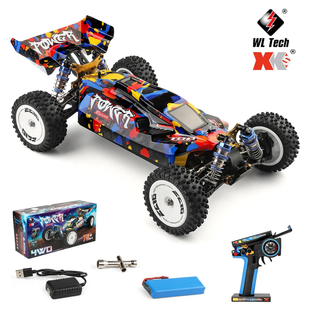 It adopts a 2.4G radio control system. With a high speed of 75km/h, you can enjoy the high-speed competition at the track or in your own backyard. This remote control car is a perfect to bring your kids to explore the field of automotive technology. It is a great gift to help your child's brain development. Anti explosion PVC color printing car shell, beautiful and collision resistant. Features: High-Speed Performance: Built-in super strong, powerful, and high-efficiency brushless motor makes the electric energy converted into power maximally and the running speed is up to 75km/h. 2.4G Remote Control Frequency: 2.4GHz Radio System with anti-jamming capability allows us to race at the same time on the same track. The control distance is up to 100 meters. High Quality Accessories: Four wheel independent suspension system, simulating hardware oil shock absorption, all zinc alloy gear, strong wear resistance, and improved gear service life. Integrated Mobile Phone Holder: In order to facilitate the external camera to achieve real-time control vision, the remote control is equipped with a built-in mobile phone bracket for smooth play. Conquer Various Terrains: Four huge anti-slip wheels connected by shockproof springs are terribly stable. It is easy to adapt to rough terrains such as beach, snow, grass, mountain road, and rock road. Specifications: Brand: WLtoys XKS Model: 124007 Item Name: Off-road Car Scale: 1/12 Main Material: Alloy, PA, PVC Maximum Speed: 75km/h Frequency: 2.4GHz Battery: 7.4V 2200mAh Motor: Brushless Motor Charging Time: 3h Working Time: 8min Remote Control Distance: About 100 Meters Remote Controller Battery: 2*AA Battery(not Included) Size: 35.6*20.8*11cm Weight: 931g Note: * Don't over-charge or over-discharge batteries. Don't put it beside the high-temperature condition. Don't throw it into the fire. Don't throw it into the water. * There could be some deviations due to manual measurement or slight color difference owing to photographing condition. Thank you for your understanding. Package Information: Package Size: 46.2*22.8*15.5cm Package Weight: 2233g Gift Box Package Package List: 1 * Remote Control Car 1 * Remote Controller 1 * Battery 1 * Charging Cable 1 * Cross Wrench More offers, more surprises