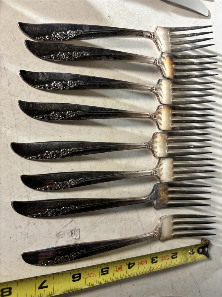 This exquisite silverware set from W.M Rogers & Son is a true gem for collectors and enthusiasts alike. Crafted in 1818, the set includes 8 forks with intricate details and a stunning silver finish. The brand's reputation for quality is evident in the composition of the set, which features silverplate that is both durable and elegant. Perfect for any formal or casual occasion, this set is a must-have for any silverware collection.