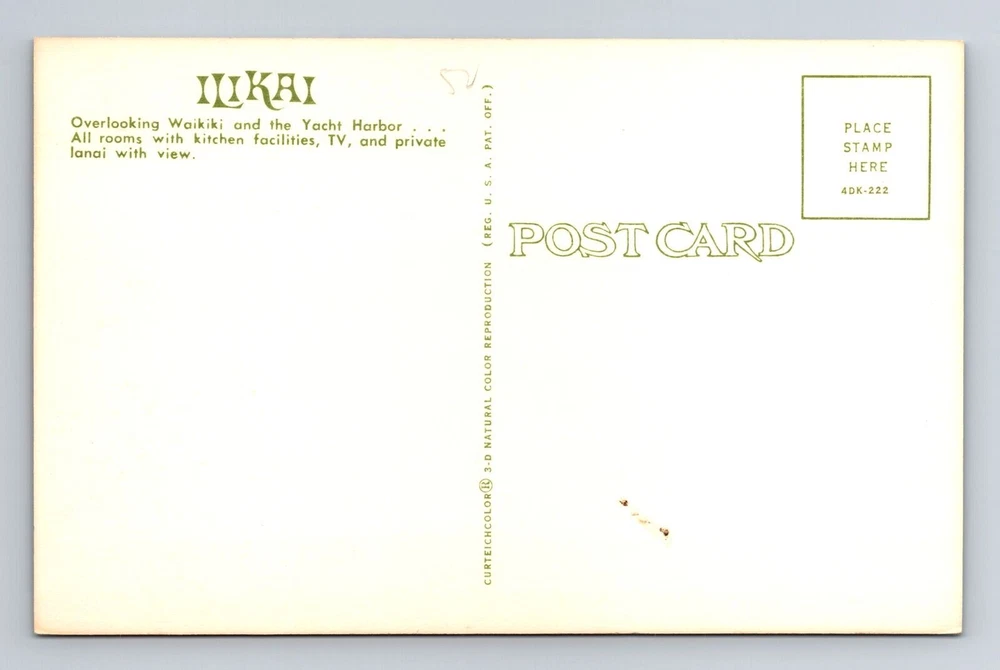 Waikiki HI-Hawaii, Aerial Ilikai Hotel, Souvenir, Vintage Postcard