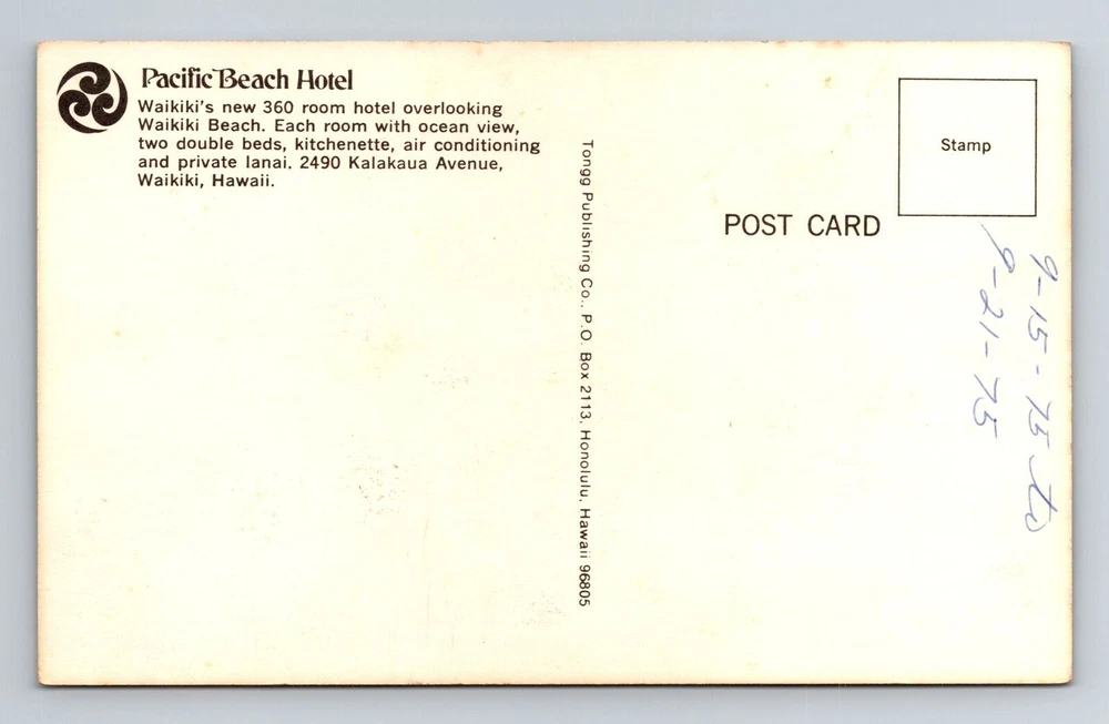 Waikiki HI-Hawaii, Pacific Beach Hotel, Souvenir, Vintage Postcard