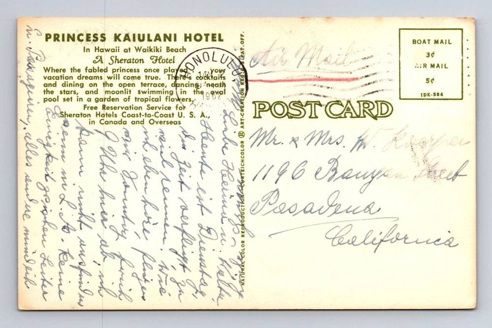 Waikiki HI-Hawaii, Princess Kaiulani Hotel, Advertise, Vintage c1962 Postcard