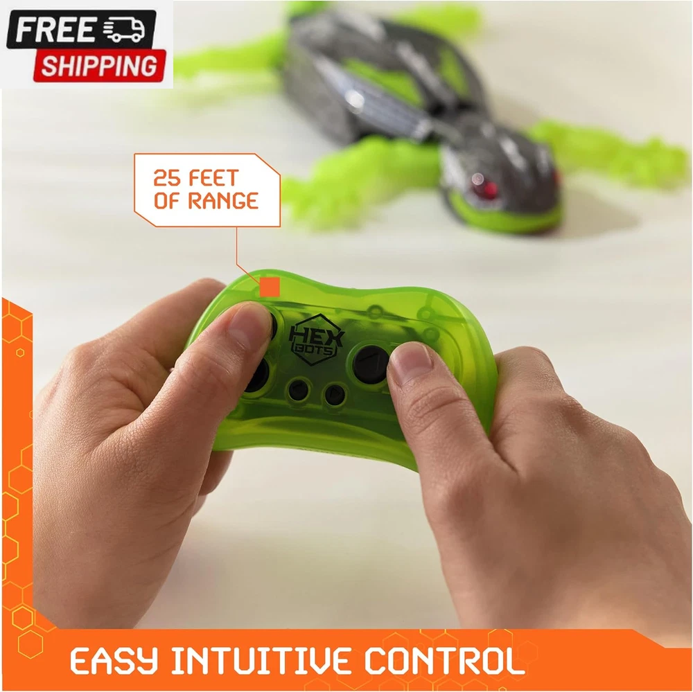 Fast Shipping On All Items 30 Days Money Guarantee Customer Support Excellent Service 100% Satisfaction Satisfaction Guaranteed Wall Crawler Gecko, Rechargeable Remote Control Robot Kids Toys, Climbs up Walls for Prank Toys & Games, RC Robot Toys for Boys & Girls Ages 4 & Up. Specification Sub Brand Spin Master Item Dimensions L x W x H 14"L x 9"W x 1.57"H Size 1 Are Batteries Required Yes Unit Count 1.0 Count Color Wall Crawler Gecko Animal Theme Gecko Required Assembly No Theme Animal Number of Batteries 3 AAA batteries required. (included) Package Type FFP Occasion Type Christmas Toy Figure Type Doll Play Activity Location Floor Special Features Wall-climbing, Realistic Design, Remote Control Model 6071514 Number of Pieces 1 9.0 inches x 14.0 inches x 1.57 inches. Weight: 11.3 oz Item Description WALL CRAWLING MOVEMENT: Watch the creepy-crawly motion of the Wallcrawler robot toy as it crawls across the floor and climbs up walls, just like a real gecko Scare your family and friends with the life like movement FULL FUNCTION REMOTE: Easy-to-use remote control allows for intuitive play as users can control up to 25 ft (8 m) and move in all directions REALISTIC DESIGN: This light up toy come with LED eyes that can be seen in the dark, green silicone tail and limbs, and a black plastic body, for a realistic, fun design sure to creep your friends out USB BATTERY: 1 USB cable for charging your Gecko is included so you can have endless fun with this HEX BOTS crawling toy 2 AAA batteries required for remote (not included) ROBOTIC KIDS TOYS & GAMES: These robot toys and toys for boys age 4-6 are a fantastic addition to any collection and sure to be a top wish list gift Unleash mechanical mayhem with HEX BOTS Includes: 1 HEX BOTS Wall Crawler Gecko, 1 Remote Control, 1 Charging Cable, 1 Instruction Guide Covered by the Spin Master Care Commitment. See below for full details Creep out friends and family with the HEX BOTS Wall Crawler Gecko! This hyper-realistic robot toy lizard is guaranteed to get a scream out of anyone afraid of creepy crawly insects or bugs! Watch as your Gecko scurries across the floor and scales up walls, just like a real gecko! A full function remote control allows for intuitive play as you can control it just the way you want, and LED light eyes make the Wall Crawler Gecko stand out in the dark! The body is made of hard plastic, with silicone for the limbs and tail! These RC boys toys come with a range of 25 ft (8 m), and 1 USB Cable is included so you can have endless fun with the HEX BOTS crawling toys! Requires 2 AAA Batteries which are not included. These boy toy robots are essential for your collection of cool toys for boys 4-6 years old. Build your collection of toy figures & playsets, building toys, STEM Toys, RC Cars and fighting games with HEX BOTS robotics! About us We offer the best prices around on high quality products. Our E-store includes media such as books, movies, music and games while offering electronics, toys, sporting apparel, clothing, tools, general home, garden items and more. Shipping We are always working hard to ensure your package arrives as soon as possible. Please understand that some factors like weather, high postal traffic, and the performance of shipping companies are outside of our control. We offer free shipping to the lower 48 states and ship within 2-3 business days of payment, usually sooner. We do not accept P.O. Boxes. Please provide a physical address. For shipping outside of the continental USA, we only use eBay's Global Shipping Program.The item is shipped to KY and then sent to the rest of the world. International customers are responsible for all duties and taxes. Continue to check out to calculate costs for shipping the item to your country. Messages regarding eBay's Global Shipping Program MUST be directed at eBay EXCLUSIVELY. Returns We offer a 30-Day Return Policy on items in which you are not completely satisfied with. You have the option of a full-refund or an exchange of the item. No returns are available on items shipped outside of the USA Satisfaction We try over very best to make sure every customer is completely satisfied. If there's a problem, message us! We're happy to help. Payment Options Shop With Confidence