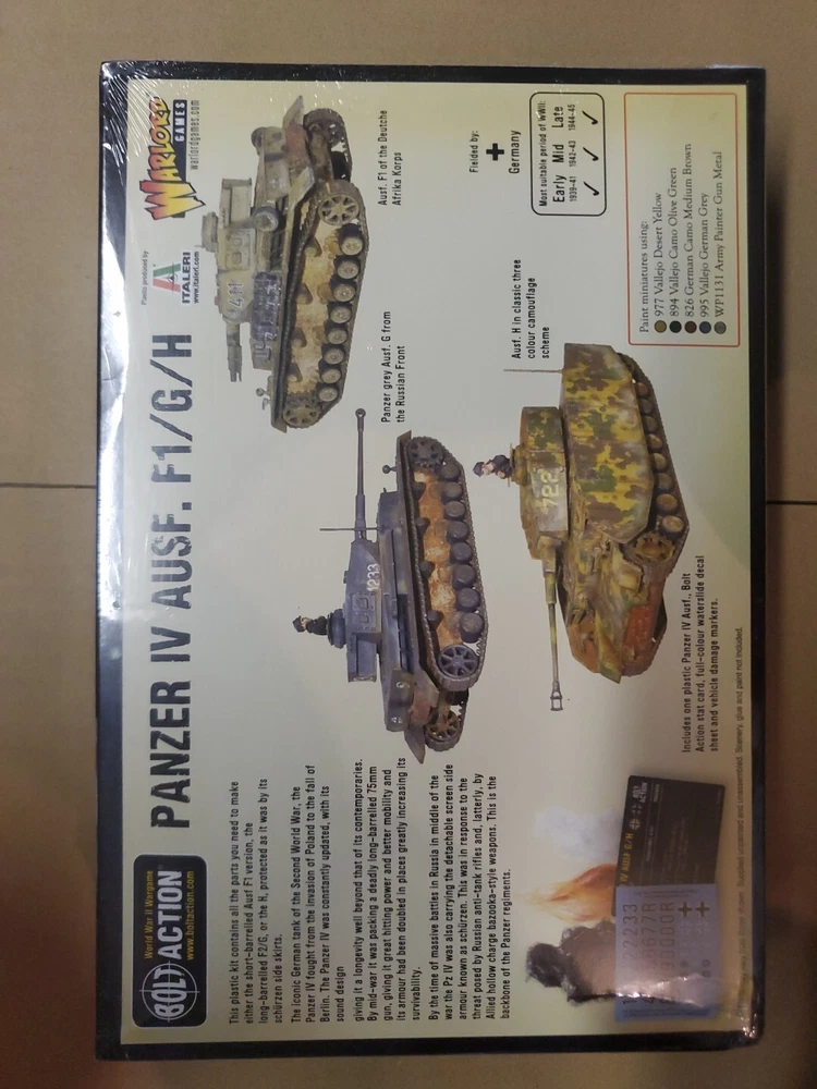 Bolt Action 402012010 1:56 Panzer IV Ausf. F1/G/H Medium Military Tank Model Kit. Condition is New. Shipped with USPS Ground Advantage.