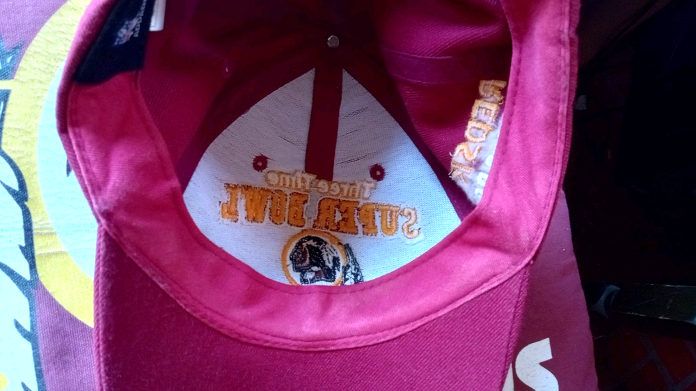 Washington Redskins 3X Super Bowl Hat - One Size Adjustable strap, logos and letters embroidered and stitched.