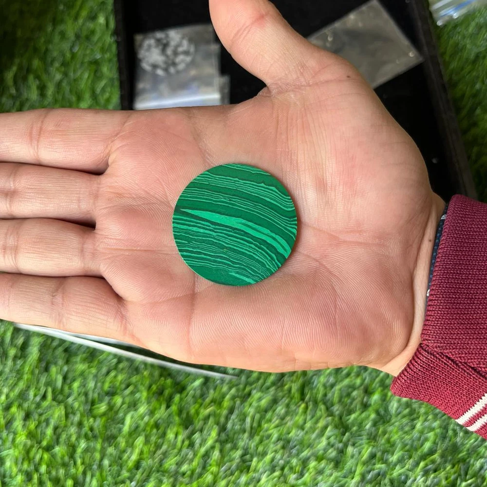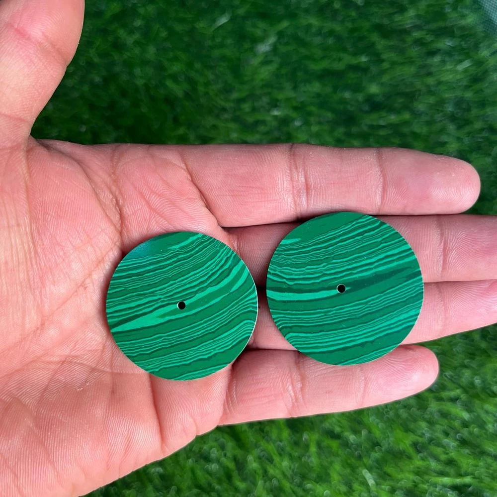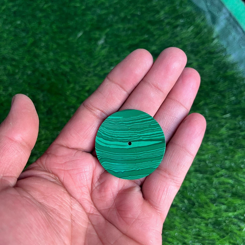Watch Dial, Malachite Round Flat Shape Calibrated Cabochon with Center Drilled