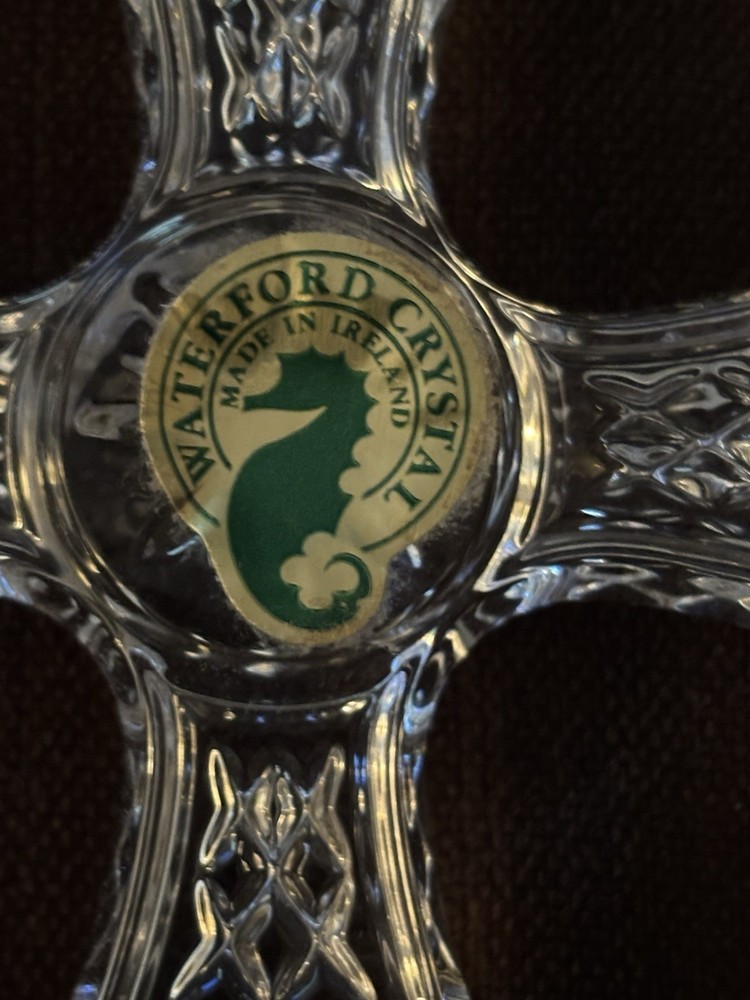 Waterford Crystal cross ornament. It measure approximately 4” by 2 1/2” by 1/2”. It has Waterford seal and etching. Preowned. Very good condition. No chips or cracks.