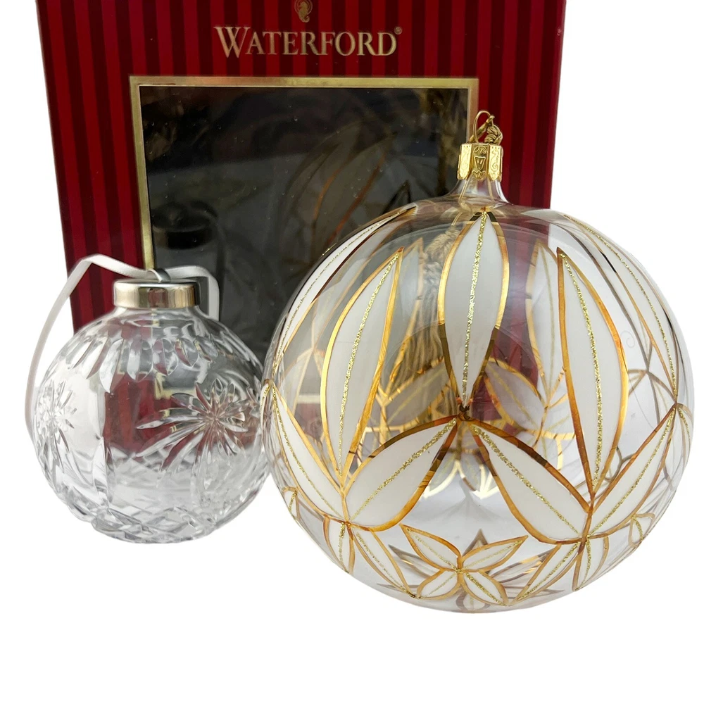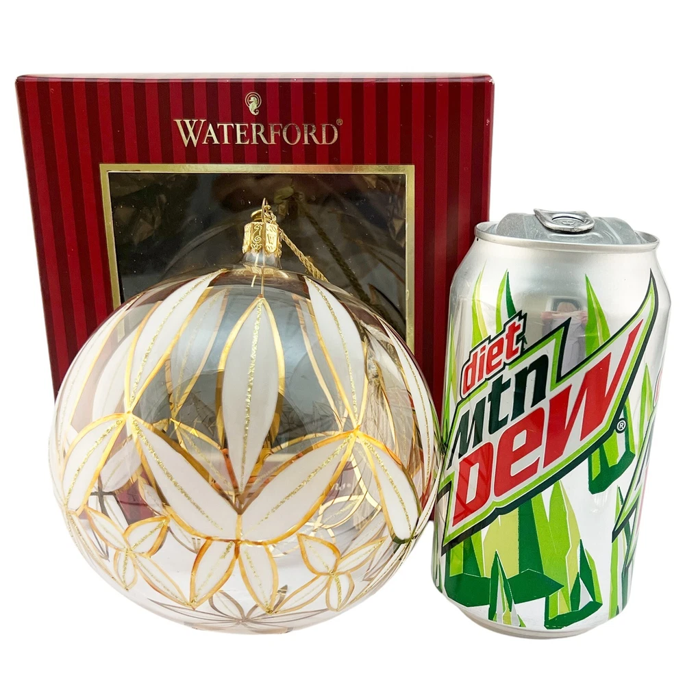 Waterford Crystal - Lismore 24CT Gold Ball Holiday Heirlooms Ornament For your consideration, "Lismore 24CT Gold Ball" ornament is an oversized ball hand-decorated with 24CT gold to replicate the timeless Lismore pattern. Much larger than the typical Holiday Heirlooms ball ornaments, I have taken a picture next to a typical Waterford Crystal ball ornament and then a soda can to help you envision size. The image of the ornament sitting atop the box is held in place with museum putty which is the white that you see underneath the ornament. 4-1/2" Across Hand made and decorated Beautiful, damage-free The ornament stand and clear ornament are not included but used as photography props "The name Waterford has been synonymous with fine quality and excellence in workmanship for over two centuries. For generations, the master craftsmen at Waterford Crystal have been creating the most beautiful and sought after crystal in the world. Waterford Holiday Heirlooms bring the tradition of hand cut crystal from the world's leading artisans to a collection of handcrafted holiday ornaments that reflect and illuminate the spirit of the season. The Holiday Heirloom ornament was created by highly skilled glass-blowers using centuries old techniques handed down from generation to generation. Artists skilled in the application of intricate detail painstakingly adorn and decorate each piece. The charm of handcrafting gives unique characteristics to your ornament. No two are exactly alike. With signature flourish, a Waterford inscribed hanger cap and coordinating with ribbon crown your Holiday Heirloom ornament." Ships insured Have more Christmas listed Value Added Service We answer emails personally and understand you have concerns and questions that may be outside of the scope of the auction copy Feedback is left by us when we receive your payment. It's the very least we can do to thank you for putting your trust in us We know how to pack, using the proper materials to best protect your purchase Shipping Buyer is responsible for shipping costs, unless the listing is advertised as "Free Shipping". The shipping fee is either clearly stated or the eBay calculator determines shipping based on your zip code and the box particulars. Multiple purchases may have an unknown shipping rate due to fluctuations in weight but items will be combined to save money whenever possible. Insurance is always provided by us to cover loss or in the rare instance, damage If you intend on bidding on multiple items, please let us know so we don't start packing in advance In the case of damage in an insured shipment: Retain all packing materials and the box that was received. Please submit digital images of the damage as well as the shipping box and packing materials via Contact Seller in eBay. Returns If you receive something not as described due to a blatant mistake on our part, we'll pay everything; return shipping as well as a full refund of the purchase price and the original shipping Buyer's Remorse: We are flexible if a purchased item arrives and you simply change your mind. A 15% restocking fee will be charged and return shipping is at buyer's expense Please notify us within three days of item(s) receipt and for pre-authorization (use the contact button). The item(s) must be returned and received in the same condition as when originally shipped. Item(s) must be returned shipping prepaid, insured for the full value and safely wrapped and packaged to prevent shipping damage. Unless stated as new, these pieces have been around for many years, some as many as 100 years and are sold as described. They may have been displayed, used, washed, packed, etc The pictures and descriptions are as detailed as possible, and all reasonable care has been taken to describe as accurately as possible along with any damage or issues noted. However, vintage and antiques are previously owned If anything less than perfect, out of the box, isn't acceptable, these style pieces may not meet your standards. - All sales are US only at this time.