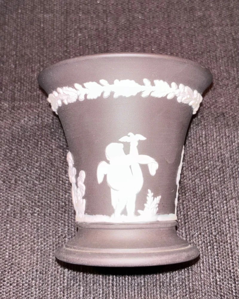 Wedgwood Black Basalt Jasperware Vase Cup Tumbler Cigarette Holder, Made in England. About 3 1/4" high x 3 1/4" wide, nice condition, no chips or cracks. 100% of sales benefit charity, thank you for supporting our cause!