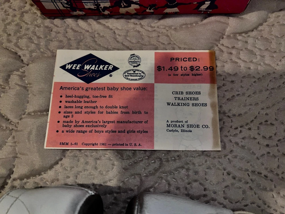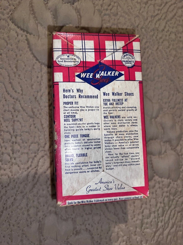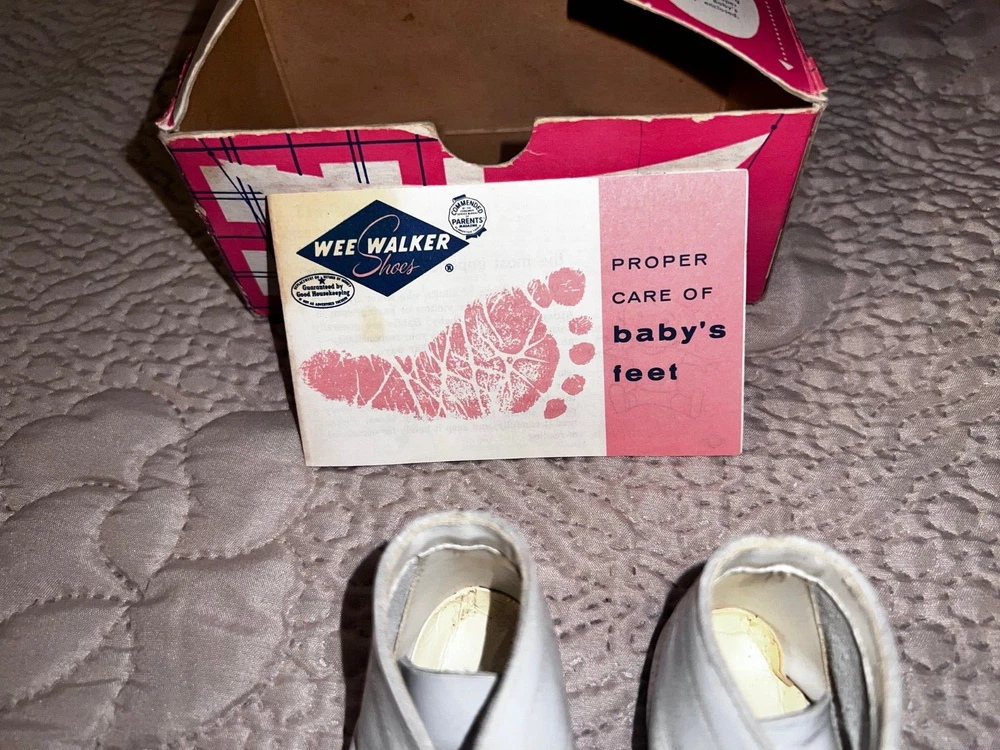 Vintage Wee Walker Baby Shoes, White with Box. 1951
