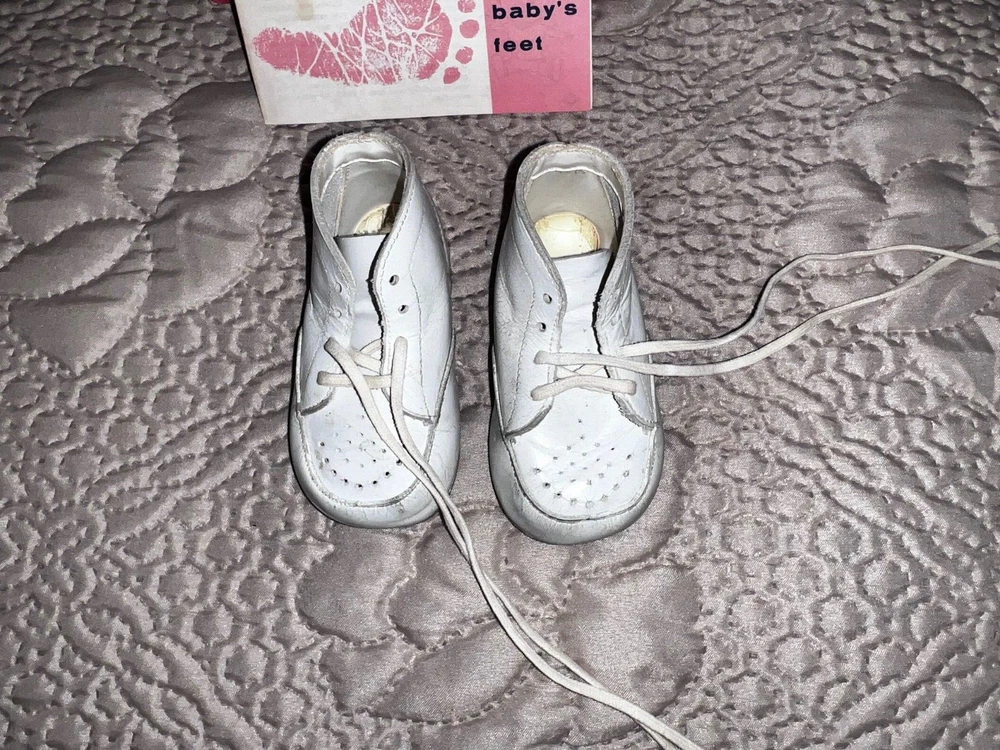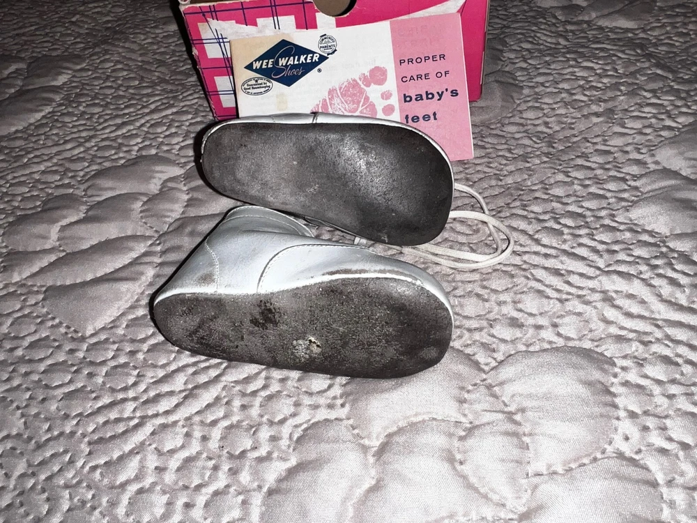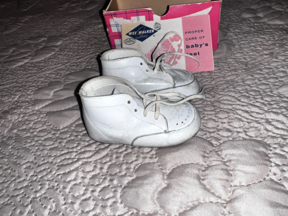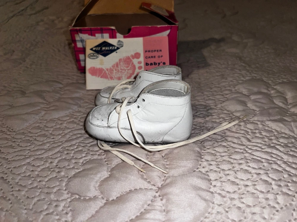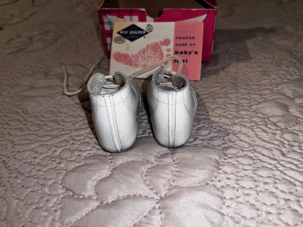 Wee Walker Vintage White Baby Shoes w/ Original Box 1960’s Size 1