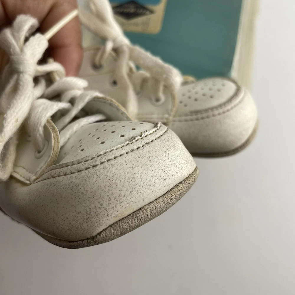 These shoes are in great condition considering their age. They are soft soles. They come with original box which has some wear from age as well. Great pair for display or as a gift.