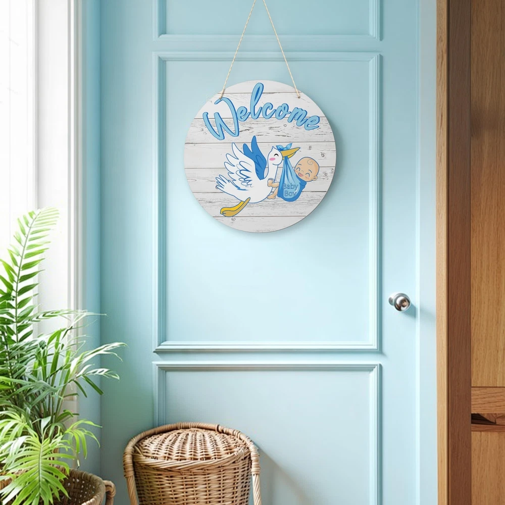 Welcome Baby Boy Sign Front Door Decoration, 12 Inch Round Wood Sign Wall Hanging Outdoor, Farmhouse, Porch, Front Door Sign Decor for Baby Shower Gender Reveals Birthday Party Supplies Product Details Style: Baby Boy1 Brand: TESAFNG MPN: TG-WoodSign UPC: Does not apply EAN: Does not apply Color: Blue Brand: TESAFNG Material: Wood Theme: Welcome Recommended Uses For Product: nurseries, baby showers, gender reveal parties, and baby-related events Included Components: Hanging hardware Brand Name: TESAFNG Recommended Uses For Product: nurseries, baby showers, gender reveal parties, and baby-related events Material Type: Wood Shape: Round Style Name: Baby Boy1 Theme: Welcome Color: Blue Item Dimensions L x W: 11.81"L x 11.81"W Pre Printed Text: Welcome Baby Boy Mounting Type: Door Mount Unique Design for Baby's Room: Our welcome baby sign features a unique and adorable design that will complement any nursery decor. With charming illustrations and heartfelt messages, it's the perfect addition to welcome your little one into the world Premium Quality Material: Crafted from high-quality wood, our hanging round wood sign is sturdy and durable, ensuring it will last for years. You can trust it to stand the test of time and stay looking beautiful throughout your baby's childhood Easy to Hang & Display: This holiday front door sign is lightweight yet sturdy, making it easy to hang on doors, walls, or any other flat surface. The included hanging hardware ensures a secure and hassle-free installation Versatile & Multi-Purpose: This welcome baby decorations is not just for nurseries! It can also be used as a charming decoration for baby showers, gender reveal parties, or any other baby-related event. The versatile design and colors make it a perfect fit for any occasion Thoughtful Gift Idea: Whether you're a new parent or shopping for a friend, our baby wooden sign is a thoughtful and practical gift. It's a beautiful way to celebrate the arrival of a new baby and will bring joy to any parent's heart