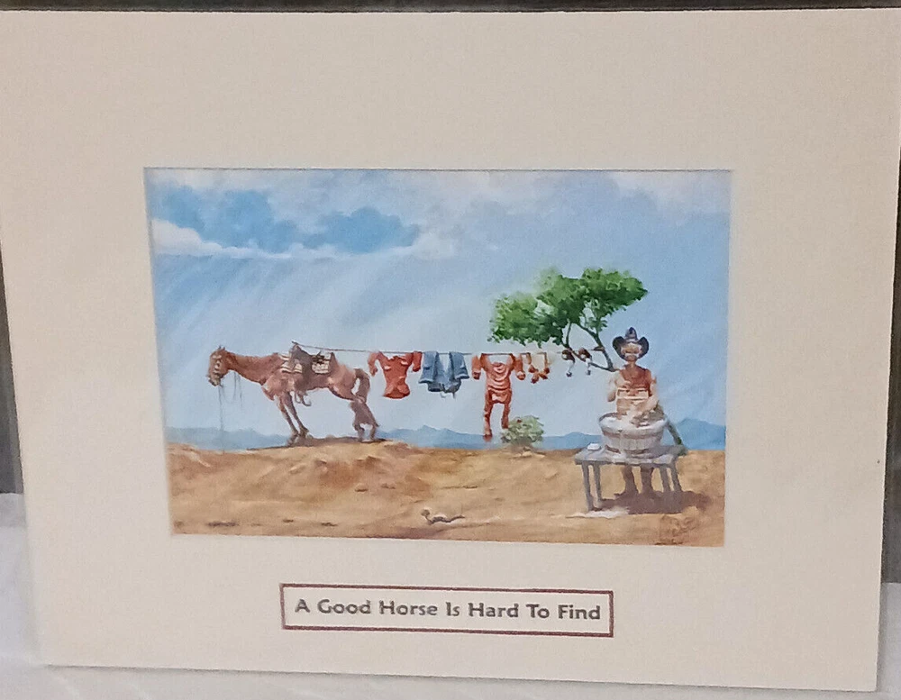 This Art Work Is From The Estate Of Hugh LaBere One Of The First Showroom Owners At The Denver Merchandise Mart . This Boots Roy Reynolds Open Edition Print A Good Horse Is Hard To Find. Boots Was Just One Of The Many Lines My Step Dad Represented He Knew Many Of The Artists Personally And These Are From His Personal Collection That He Wanted To Open An Art Gallery With . My Stepdad Hugh Earned The Title" The Living Legend" You Are Much Missed! COWBOY UP, Love Your Daughter Sheila. Thank You For Looking ! Or Buying ! H 8" X W 10" Still Sealed In Original Plastic***** His Bio Is On The Back Of Each Picture