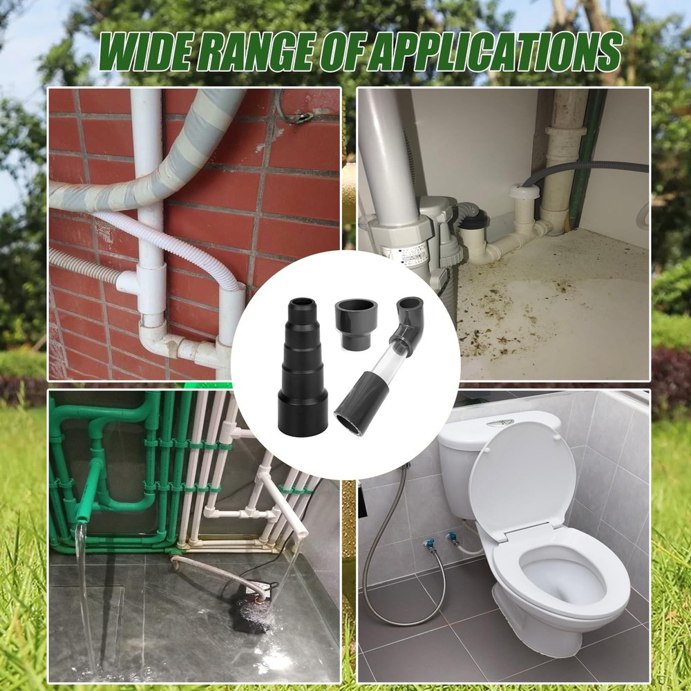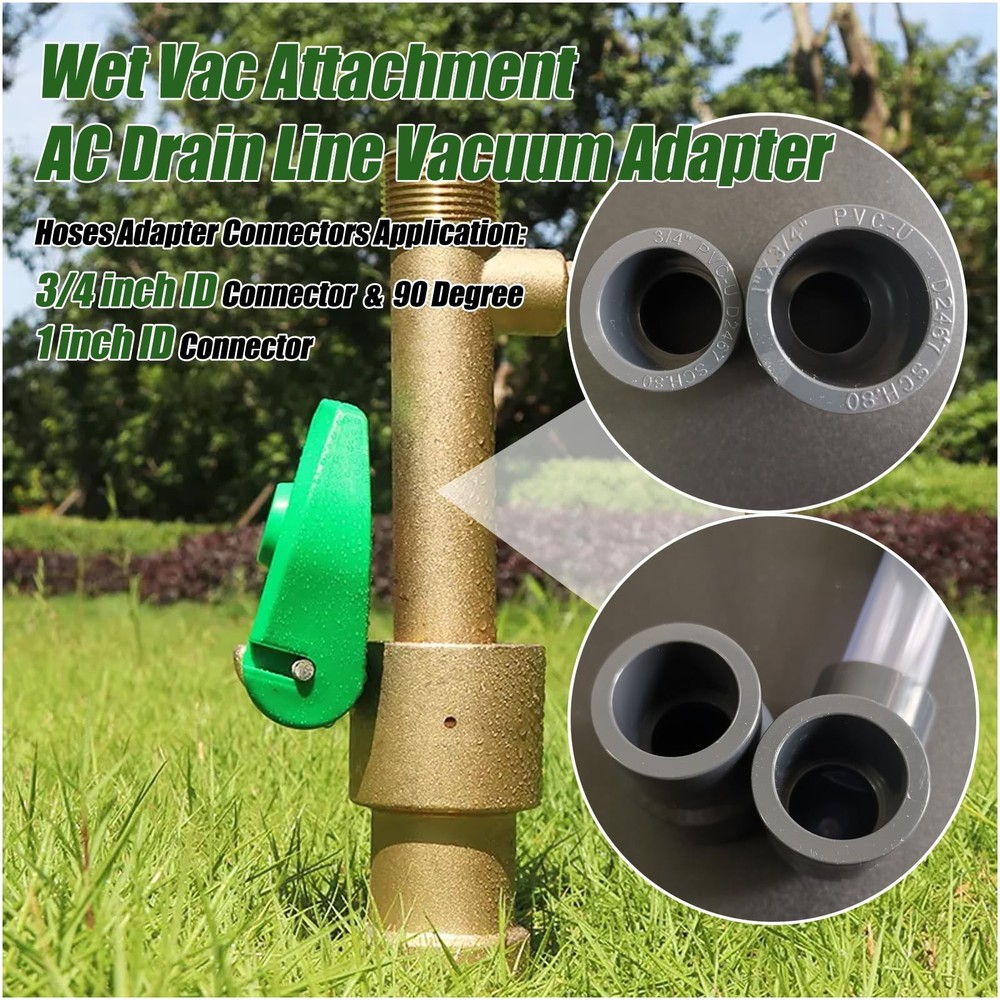 Wet Vac Attachment AC Drain Line Vacuum Adapter to Unclog and Evacuate A/C HVAC Drain Lines, Universal Hvac Ac Drain Line Cleaner Tool Vacuum Hose To PVC Pipe 3/4inch, 1inch Adapter Specification: Name:Wet Vac Attachment AC Drain Line Vacuum Adapter Material:High Quality Rubber & PVC Hoses Adapter Connectors Application: 3/4 inch ID Connector & 1inch ID Connector Wet Vacuum Cleaner Connector Range: 0.76-1.96inch (20cm-50cm Diameter). 【Note 1】Equipped with 2 types of connectors, the 3/4inch ID connector and 1inch ID connector. For additional sizes, please purchase the corresponding reducer connector. (You are required to confirm this before ordering). 【Note 2】Wet vacuum cleaner connector range: 0.76-1.96inch (20cm-50cm diameter). 【Note 3】Do not mix with regular household vacuum, the air conditioner drain cleaning tool can only be used with dry/wet vacuum cleaners (vacuum that can suck up water). Features: 【Wet Vac Attachment--AC/HVAC Drain Line Vacuum Adapter】 Designed for use in connecting vacuum hoses and drain lines, you can quickly connect the lines for cleaning air conditioning condensate drain lines. No more hassle of cleaning your air conditioning lines by hand, while helping save hundreds of dollars. 【Exquisite Design】The visual transparent tube is designed to be more intuitive to understand how it works and whether it pumps cleanly. The 3/4 inch diameter Visible Clear Tube offers greater flow and suction capacity to ensure a clean tidy. This coupling tool provides more convenience for cleaning pipes. 【Craftsmanship Materials】The Wet Vac Attachment overall combination is composed of high quality rubber and PVC thick tube.2.5mm thick tube and joints are durable, not easy to deform, tear or break, suitable for long-term use. The joints can be tightly connected and not easily loosened, ensuring long-lasting and reliable performance. An indispensable tool for cleaning air conditioning condensate drain lines. 【Easy To Install】When in use, simply connect the tool end of our cleaner to the wet vacuum and switch on the wet vacuum to ensure a good seal and perfect fit. There is no requirement to form a seal between the vacuum hose and the PVC tube by hand. Results can be viewed in less than 10 seconds. 【Wide Range of Applications】Equipped with 2 types of connectors, the usual 3/4inch ID connector and the 1inch ID connector. Wet Vacuum Cleaner Connector Adaptable Range: 0.76-1.96inch (20cm-50cm diameter) Suitable for different sizes of pipes and hoover connectors. Can be used in diverse daily piping, such as HVAC piping, AC piping, clogged water pipes and other scenarios, with a wide range of applications. Wet Vac Attachment AC Drain Line Vacuum Adapter to Unclog and Evacuate A/C HVAC Drain Lines, Universal Hvac Ac Drain Line Cleaner Tool Vacuum Hose To PVC Pipe 3/4“, 1“ Adapter 【Wet Vac Attachment--AC/HVAC Drain Line Vacuum Adapter】 Designed for use in connecting vacuum hoses and drain lines, you can quickly connect the lines for cleaning air conditioning condensate drain lines. No more hassle of cleaning your air conditioning lines by hand, while helping save hundreds of dollars. 【Exquisite Design】The visual transparent tube is designed to be more intuitive to understand how it works and whether it pumps cleanly. The 3/4 inch diameter Visible Clear Tube offers greater flow and suction capacity to ensure a clean tidy. This coupling tool provides more convenience for cleaning pipes. 【Craftsmanship Materials】The Wet Vac Attachment overall combination is composed of high quality rubber and PVC thick tube.2.5mm thick tube and joints are durable, not easy to deform, tear or break, suitable for long-term use. The joints can be tightly connected and not easily loosened, ensuring long-lasting and reliable performance. An indispensable tool for cleaning air conditioning condensate drain lines. 【Easy To Install】When in use, simply connect the tool end of our cleaner to the wet vacuum and switch on the wet vacuum to ensure a good seal and perfect fit. There is no requirement to form a seal between the vacuum hose and the PVC tube by hand. Results can be viewed in less than 10 seconds. 【Wide Range of Applications】Equipped with 2 types of connectors, the usual 3/4inch ID connector and the 1inch ID connector. Wet Vacuum Cleaner Connector Adaptable Range: 0.76-1.96inch (20cm-50cm diameter) Suitable for different sizes of pipes and hoover connectors. Can be used in diverse daily piping, such as HVAC piping, AC piping, clogged water pipes and other scenarios, with a wide range of applications. 【Note 1】Equipped with 2 types of connectors, the 3/4inch ID connector and 1inch ID connector. For additional sizes, please purchase the corresponding reducer connector. (You are required to confirm this before ordering). 【Note 2】Wet vacuum cleaner connector range: 0.76-1.96inch (20cm-50cm diameter). 【Note 3】Do not mix with regular household vacuum, the air conditioner drain cleaning tool can only be used with dry/wet vacuum cleaners (vacuum that can suck up water).