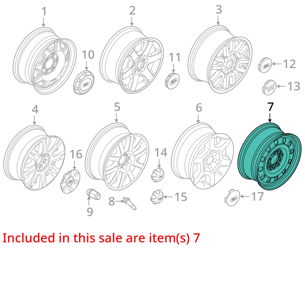 Wheel 17x8 Steel 12 Hole ID 7L14-1015-DA Fits 07-17 EXPEDITION 4743856 This part is from a 2013 F150 with 166000 miles on it. This part has been fully tested while installed and will go through our industry leading quality control inspection before shipping. This part is backed by our 90 Day Money Back Guarantee at no additional charge. If you have any questions about this part, or any other parts from this vehicle, please click HERE to send us a message. Please include the Item ID in your message so we know which part you are asking about. We answer all questions promptly during regular business hours. Part Notes Notes: 4DR Donor Vehicle Model: F150 Year: 2013 Mileage: 166000 (1000 = Unknown) Stock Number: 409612 SEE MORE F150 PARTS SEE ALL PARTS FROM THIS CAR Part Fitment Information This part will fit these makes and models with these options. EXPEDITION 07-11 17x8, steel, (12 hole), (ID 7L14-1015-DA) EXPEDITION 12-17 17x8 (TPMS), steel, (12 hole), (ID 7L14-1015-DA) FORD F150 PICKUP 07-14 17x8, (steel), (12 hole), (ID 7L14-1015-DA) NAVIGATOR 07-17 17x8, (steel), (12 hole), (ID 7L14-1015-DA) If you do not see your vehicle in this list, please click HERE to send us a message so before buying so we can verify if it will fit your vehicle. Our Promise Our Promise is that you are completely satisfied with every part you buy from Midway Auto Parts This part is covered by our 90 Day Money Back Guarantee . If you have a problem with the part, changed your mind or the part does not fit, simply let us know. You have 90 Days from the purchase date to return it for a full refund. Please use the eBay return center for all returns. If you need help with returning an item, simply send us a message. We are here to help. About Midway Auto Parts Midway Auto Parts is a proud member of Team PRP. Team PRP is the largest group of independent automotive recyclers in North America. Each Team PRP member uses an identical quality assurance program based on ISO 9000 standards. The result is a nationwide label that delivers consistently high quality parts and maximizes consumer, mechanical repairer, collision center, and estimator confidence. If you need a part that we do not have in stock, we can find it from our network of some of the best recyclers in the country. Shipping Information All orders placed after 1pm EST will begin being processed by the next business day. Please refer to our current handling time under the Shipping, Returns and Payments section on the listing for when the item will be shipped out. Our facility is closed on weekends and holidays. This part will ship via UPS or FedEx with live tracking information. You will receive a message with tracking information as soon as your part ships. Once shipped, please allow up to 6 business days for your part to arrive, depending on your location.
