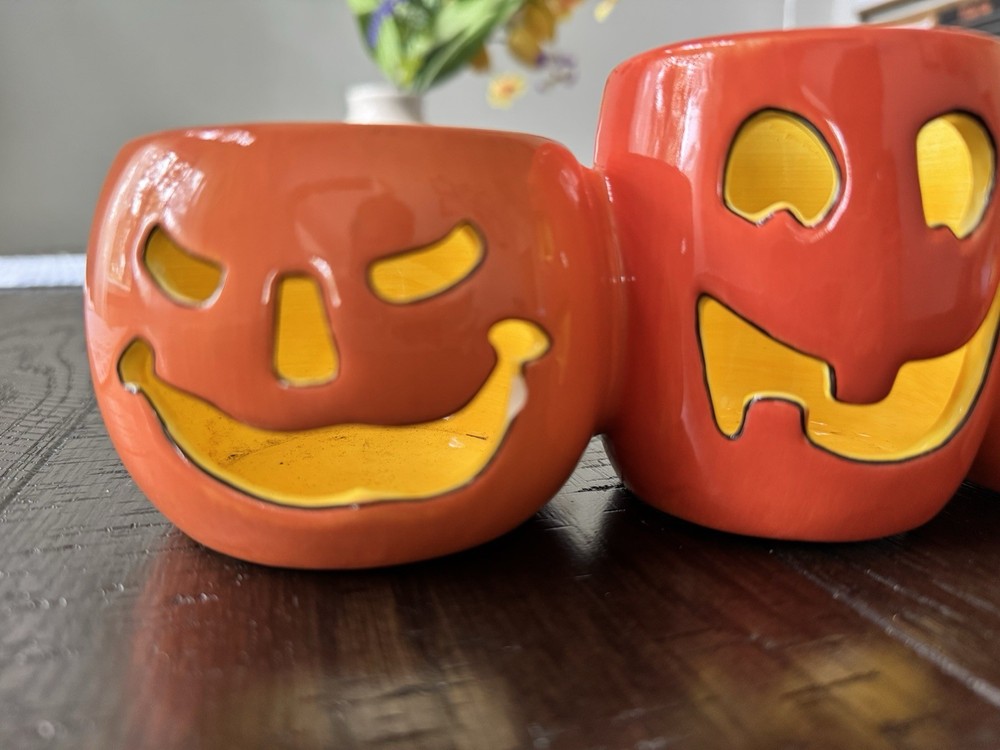 Adorable Thick Ceramic Pumpkin Candle Jar With Handle for Halloween NWOT