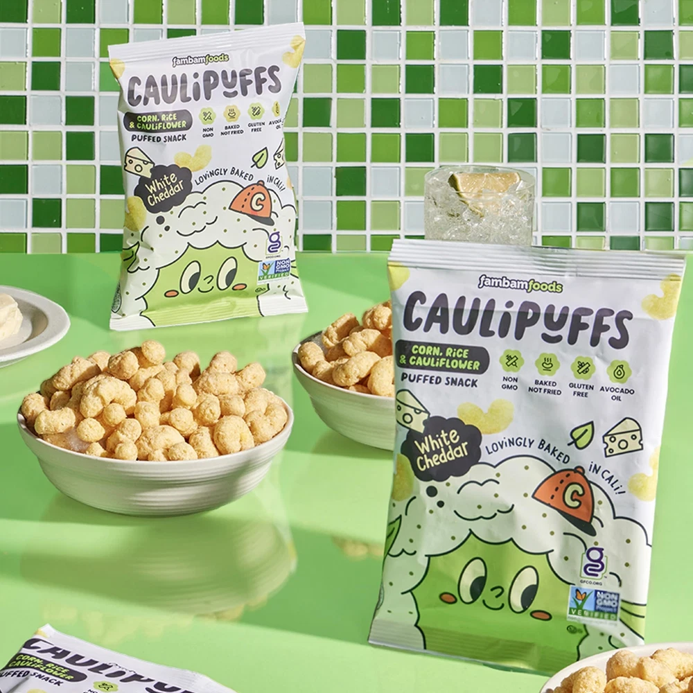 Luscious light and airy snack puffs, delightfully seasoned with cauliflower. Satisfy crunch cravings for the whole family. Guilt-free goodness, a healthy alternative to junk food - non GMO, gluten-free, baked in avocado oil and 100 calories. Perfectly portioned individual packed snacks for lunchboxes, backpacks and parties. Don’t let hunger interrupt your next adventure! Yummy snacks for tummies that do not stay on fingers (or Mommy’s dress!) No strong smells or squishiness, just mess and stress-free snacks. A family-owned brand, made with love in California. Sharing fun, health and adventure, from our family to yours.
