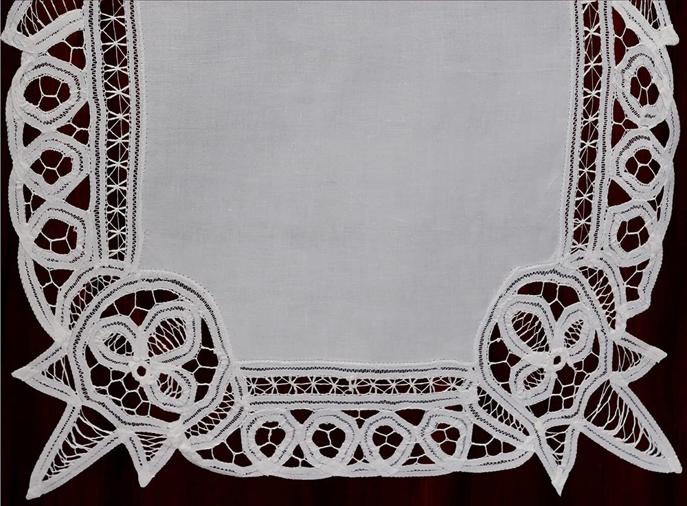 This wonderful sophisticated White Battenburg Lace Table Linen will enhance your decor for any occasion. It's perfect for holidays and special events - Valentine's Day, Easter, Mother's Day, Father's Day, Halloween, Fall Harvest, Thanksgiving, Christmas, New Year, Anniversary, Birthday, Wedding, Bridal Shower, Baby Shower etc. and everyday use. 100% Cotton. Machine care. Imported. White Battenburg Lace Table Runner,16x70" rectangle, 1 piece Matching battenburg placemats, doilies, napkins, table runners, dresser scarves, center-pieces, tablecloths, bread covers, kitchen window curtains in different sizes available. Add a bright and elegant touch to your kitchen, dining room with Battenburg Lace Collection. Perfect for everyday use, holidays and special events - Valentine's Day, Easter, Mother's Day, Father's Day, Halloween, Fall Thanksgiving, Winter Christmas, New Year, Anniversary, Birthday Party, Wedding, House-warming, Bridal Shower, Baby Shower, etc.