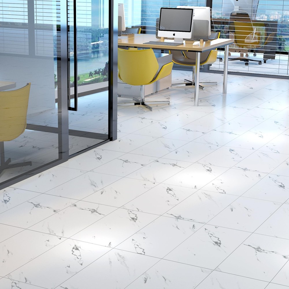 12x12 White Marble Vinyl Peel and Stick Self Adhesive Floor Tile