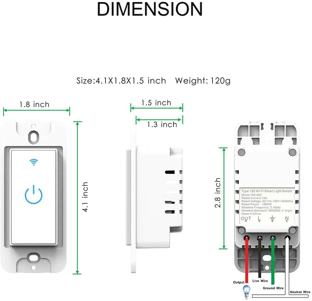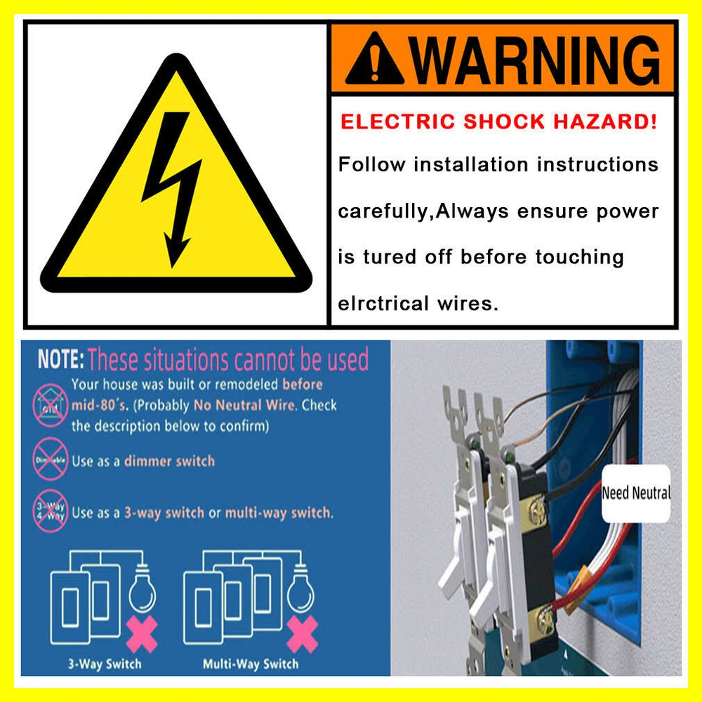 Features: 1. Wi-Fi Enabled Smart Light Switch, Control your lights from anywhere 2. Hands-free lighting control with Amazon Alexa and Google Home 3. Set your favorite lighting for an entire room with a single touch 4. Lights turn on while you aren't home, keep your home safe by using App 5. Reliable Performance enable you to enjoy the benefit of the smart home technology Specifications: Power supply: Neutral + Live wire Rated Current: 15A Rated Voltage: AC110V-125V~50/60Hz Rated Power: INC 1650W(Max) LED 300W(Max) Wireless Standard: IEEE802.11b/g/n Working frequency: 2.4GHz Safety: WEP/WPA-PSK/WPA2-PSK Encryption: WEP/AES/TKIP Static power loss: ≤0.5W Working Temp:-20゜C~75゜C Humidity: <95% Control Distance : no limitation Easy to Set Up 1. Download the “Smart life” from App Store or Google Play store. 2. Connect your mobile device to your 2.4GHz Wi-Fi network. 3. Launch “Smart life” and follow the wiring steps provided. 4. Connect the Smart Switch to your home network. 5. If you don’t know how to install the switch, or don’t know how to connect to wifi or Alexa, please feel free to contact us. Kindly Remind: 1. Live wire and neutral wire are required. 2. We recommend asking professional electrician to install. 3. Support 2.4 GHz Wi-Fi Only. 4. WiFi name and password should only contain letters and numbers. No special symbols allowed. 5. Our switch is one-way switch, can't be compatible with 3-way switch box. 6. If you have any problem in installation and use, please contact us any time by checking Your Orders and clicking Contact Seller Smart wall light switch install and connection instruction: Watch Video Video will open in a new window Using the eBay App? Paste link into a browser window: [isdntekvideo]