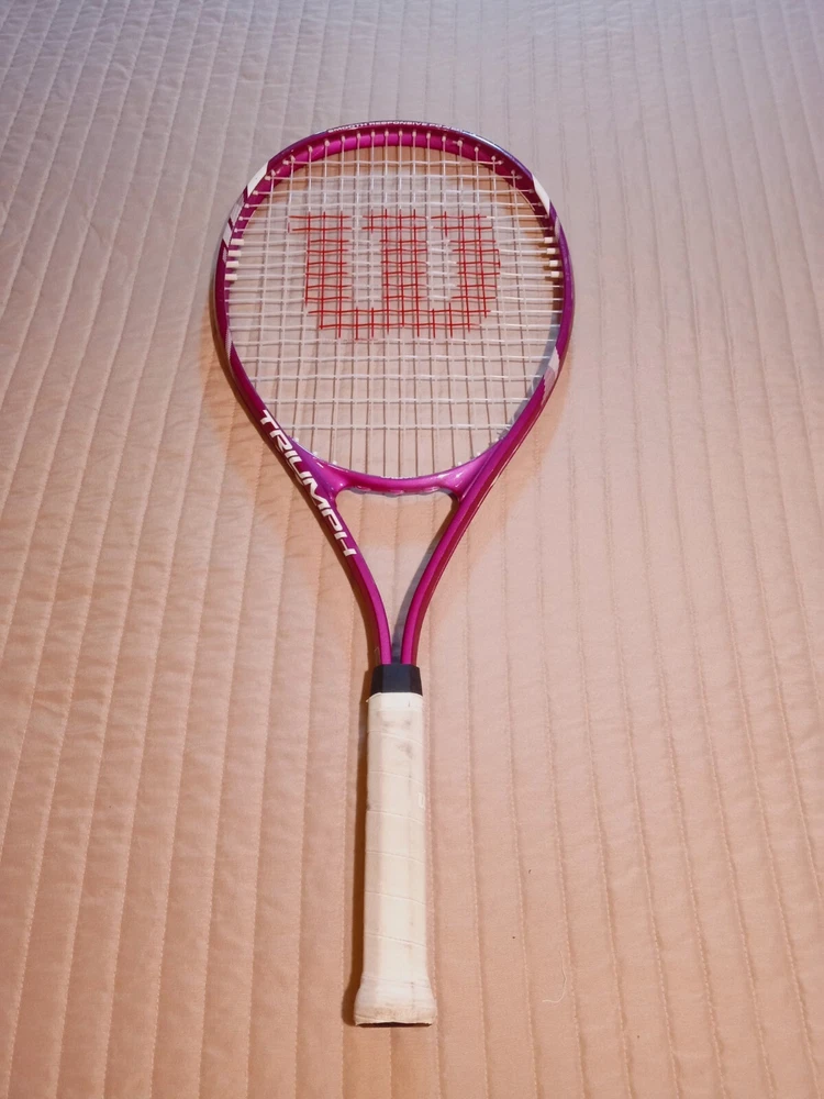 The Wilson Triumph Pink Tennis Racquet features a grip size of 4 1/4” and belongs to the Wilson brand. It is a high-quality racquet designed for tennis players.
