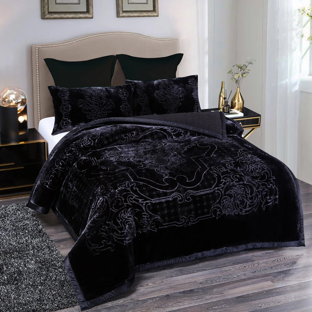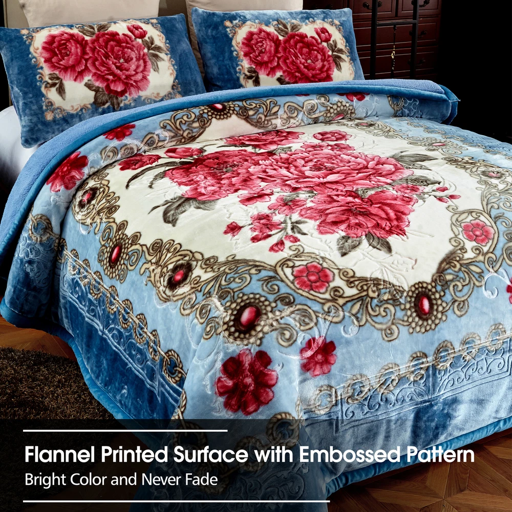 Payment Shipping Return policy About us Store category Other Blankets & Throws Quilts set Comforters & Sets Duvet Covers & Sets Mattress Pad & Protector Sheet set & Pillowcases Home Accessories Sign Up Now ! You may also like Sale Winter Blankets Grey Teal Froral Super Soft Sherpa 3 Ply Quilt With 2 Shams Product Description More Details Ply: 3 Ply Surface Material: flannel fleece Filled Material: polyester Reverse Material: Sherpa Pattern Design: Printed Embossed Size of Blanket: 79" x 91" Size of Pillow Sham: 18" x 30" Weight: 8 lbs. Package Included: 1 x Blanket, 2 x Pillow Sham Color&Pattern:Solid Colors /Printed colors Kindly Note: This is a Korean style blanket. All sizes are designed by standard Asia size, which is smaller than the US standard size. If you want to enjoy an oversize style blankets, please check our dimensions carefully or select a bigger size than your actual bed size. Thank you. Blanket Features: Soft and Warm - The Flannel Blanket with Sherpa reverse is extremely soft and warm .Keep you warm in the chilly winters . Traditional Pattern - beautiful traditional pattern with flowers and leaves all around Strong water absorption : Sherpa is effective in ricking away moisture .Keep you warm and dry in winter . Easy to Care - The plush cozy blanket is machine washable in gentle/delicate cycle, tumble dry on low. Payment Delivery details Return About us Contact us Payment We use eBay Managed Payment so that you could safely and securely pay via the following methods: Visa Master card Discover PayPal PayPal Credit Apple Pay (through the eBay app and mobile website only) Google Pay (through the eBay app, mobile website and desktop) Delivery details We offer One-day Handling time ,and it will takes about 3-6 days for shipping by USPS ,UPS or Fedex. If you have question about the shipping ,kindly contact us via Ebay Message , all messages will be replied timely . Return We accept change of mind return with 30 days ,so kindly shop with confidence . Any question ,please contact us via eBay Message . About us As a factory based supplier ,we always supply goods with affordable prices .All the items are in our local warehouse in CA . Continuous new designs will be launched ,subscribe our store and enjoy shopping here . Contact us Please contact us via eBay messages ,and you will get a reply promptly. Payment Shipping Return policy About us Ply: 3 Ply Surface Material: flannel fleece Filled Material: polyester Reverse Material: Sherpa Pattern Design: Printed Embossed Size of Blanket: 79" x 91" Size of Pillow Sham: 18" x 30" Weight: 8 lbs. Package Included: 1 x Blanket, 2 x Pillow Sham