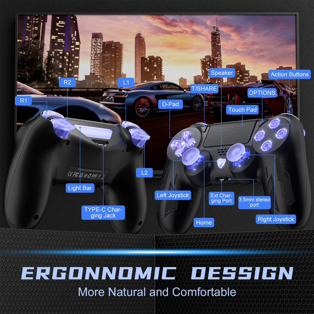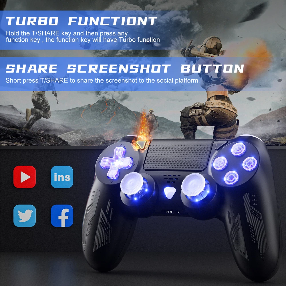 For Nintendo Switch Joy-con-Controller Left w/ Right Wireless Gamepad 1-Pair 22.89 USD 24.99 USD Free shipping 8% off Wireless Controller For Sony PlayStation 4 DualShock PS4 Game Console Zombie 22.99 USD Free shipping For Nintendo Switch Joy-Con Bluetooth Wireless Gamepad Controller w Straps L/R 23.89 USD 26.54 USD Free shipping 10% off 2 Pack Wii Nunchuck of black for Nintendo Nunchucks for Nintendo Wii and WII U 10.44 USD 10.99 USD Free shipping 5% off Wireless Controller Compatible For Sony PlayStation PS4 Console w/Dual SHOCK 21.84 USD 22.99 USD Free shipping 5% off For Nintendo Switch Joy-con Controller Left W/ Right Wireless Gamepad Pair Black 22.89 USD 25.43 USD Free shipping 10% off For Sony PS5 Controller PlayStation 5 for PS4 Bluetooth Gamepad DualShock US 25.99 USD 28.88 USD Free shipping 10% off For Nintendo Switch Joy-Con Controller Left Right Pair Joycon With Straps 24.99 USD 27.77 USD Free shipping 10% off Wireless Controller For Nintendo Switch Pro OLED/LITE Controller Gamepad NEW 14.24 USD 15.82 USD Free shipping 10% off Microsoft Xbox Wireless Controller For Xbox Series X / S, Xbox One & Windows PC 29.99 USD 33.32 USD Free shipping 10% off Joy-Con (L/R) Wireless Controllers Double Vibration for Nintendo Switch 3-Color 24.99 USD 27.77 USD Free shipping 10% off For Nintendo Switch Joy Con L/R Bluetooth Wireless Gamepad Controller Multicolor 22.89 USD 25.43 USD Free shipping 10% off Wireless Bluetooth Video Game Controller Pad For Sony PS3 Playstation3 Black col 10.99 USD 12.21 USD Free shipping 10% off Wireless Controller For Nintendo Switch Joy Con (L/R) Gamepad Oled/LITE 25.64 USD 26.99 USD Free shipping 5% off Wireless Gamepad For Nintendo Switch Joy-Con Left & Right Controller 23.89 USD Free shipping For Nintendo Switch Joy Con Controller Wireless (L&R) Special Design JOY CON 23.49 USD 26.99 USD Free shipping 13% off Product Description Colorful Falshing Light Wireless Controller for PS4 Joysticks -- Black supports Turbo function supports Bluetooth -This type controller can change different light color to blue/red/pink/green/purple/white/yellow while playing games! -Long Play Time Joysticks for PS4 -- The rechargeable wireless controller built-in 700 mAh lithium battery, charging for 2-3 hours and providing up to 12-15 hours of use time. Allows you to immerse yourself in the game world without worrying about running out of battery. Charging cable included. *Rechargeable Battery: 700 mAh *Charging Time: 2-3 hours *Working Time: 12-15 hours *Charging Methods: Charging dock and USB cable -Connetion Instructions *For ps4: First time pairing with PS-4 need to use a type-c data cable to connect *For ps3: Only support use USB cable connect ps3 *For Mobile Phone: Only support ios13+, turn on the bluetooth function of the mobile phone, then press and hold the share key + PS key on the wireless controller for 3 seconds to start pairing *For Android: Only support Android 5.0+, Press the SHARE key first, and then long press the HOME key combination, white light flashing; use Android device search ”Wireless Controllert" to click to connect the controller *For PC: Using the type-c data cable to connect directly or turn on the bluetooth function of the PC, then press and hold the share key + PS key on the wireless controller for 3s to start pairing -Features: *Wide Compatibility: Wireless controller for p-s4 uses bluetooth 4.2 connection technology for long receiving distance about 390Inch(10m) , provide stable connection, fast transmission speed, and no-delay. *Easy Sharing: Use the share button to upload your gameplay videos and pictures on social networks like Twitch, YouTube, Facebook and Twitter. Also can invite online friends to play games together. *Built-in Speaker and 3.5 mm earphone jack: Plug your headset to completely immerse yourself in a gaming world. *Ergonomic Design: Grips with an elegant, super comfortable design,highly responsive analog sticks and buttons mean greater precision during gameplay *Motion Sensor: 6-Axis motion sensor(3-axis gyroscope, 3-axis accelerometer) *Touch Pad: Clickable multi-touch pad & 360° Flexible Joysticks *100% Responsibility: 12 months Afte-sales Service Package Contains: 1x PS-4 Wireless Controller Black 1x Micro USB charge cable 1x Product Manual About Us Welcome to our store! We are a professional worldwide wholesale company. High product quality, reasonable prices, excellent customer service and a reliable credit standing is our tenet.If you like our products, please add my eBay shop to your "My Favorites" list. All the products we are selling include factory warranty , don’t cover items that have been abused, burned and damaged in any form. Payment We accpet payment via PayPal only . Import duties,taxes and charge are not included in the item's price or shipping cost.These charges are the buyer's responsibility. Please check with your country's customs office to determine what these additional costs will be prior to bidding or buying. Insurance is included in the Shipping & Handling costs paid. Shipping Items are generally shipped out in 1-3 business day after your payment has been cleared (Sat. & Sun. excluded.) Orders from the United States Warehouse will be shipped out via USPS or UPS. The shipment usually takes 3-7 business days(Saturday and Sunday excluded), if you need the item urgently, please contact us for detail before purchasing. Local pick up is not available. Orders from China will be shipped via Belgian Post or Post NL.The shipment will take 15-35 working days,please contact us if you didn't get the parcel for a long time. We do not ship to APO, FPO, Alaska, Hawaii and Puerto Rico addresses, and we are unable to ship to PO BOX for this item. Please provide your psychical address. Returns You have 60 days to return it from the date it was received. All returned items must be in the original package and you must provide us with the shipping tracking number,specific reason for the return and your ebay ID. We will r